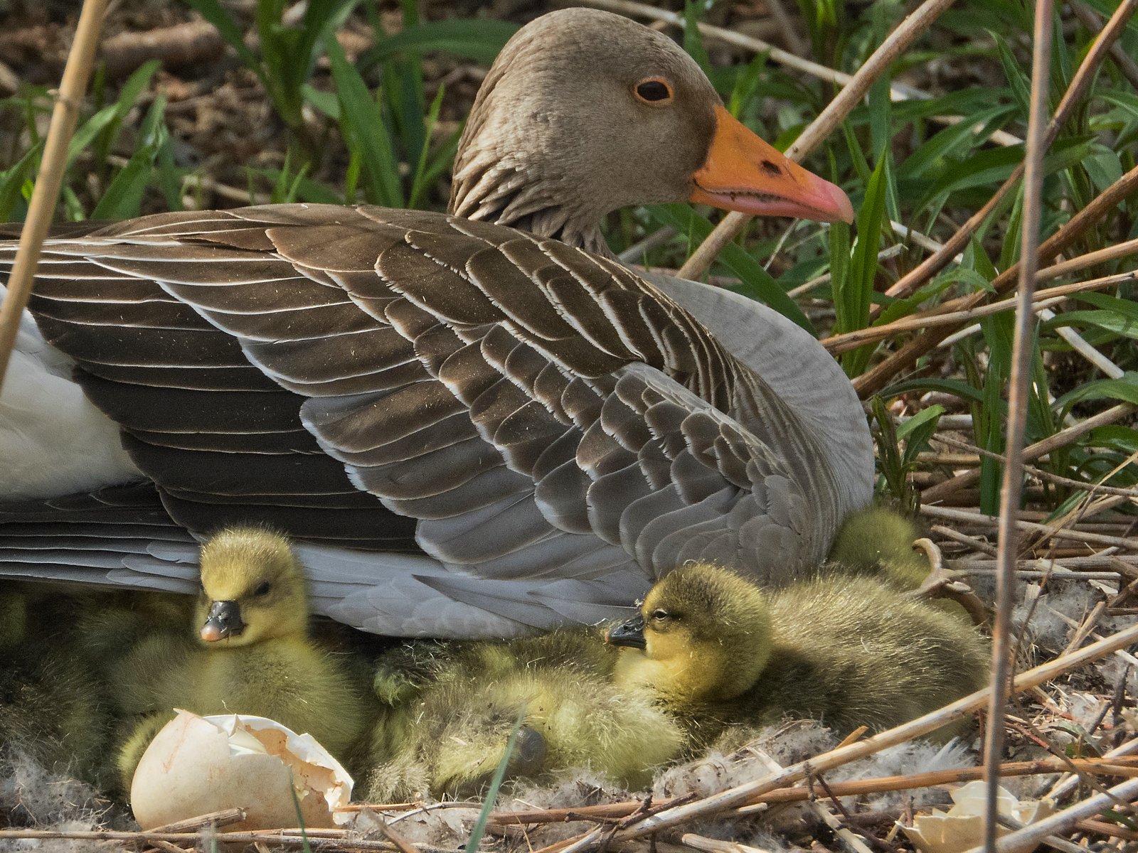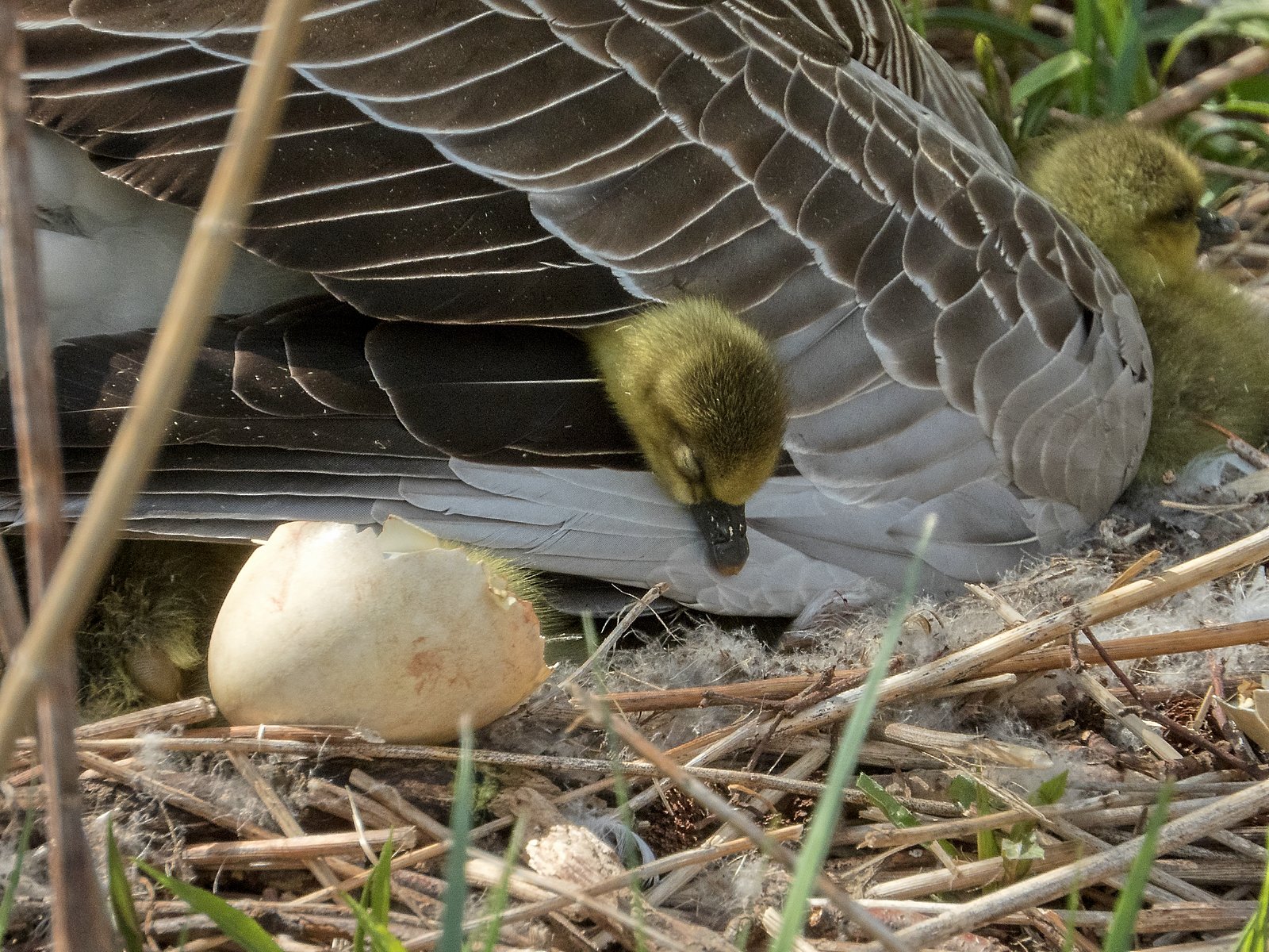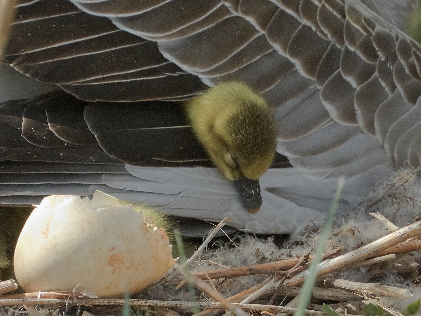 Gössel machen sich selbständig und finden nicht mehr so schnell zurück zum Nest. Konrad Lorenz im “Das Jahr der Graugans”: “Im Laufe des ersten Tages nach dem Schlüpfen werden die Jungen allmählich unruhig, kommen immer öfter unter der Mutter hervor und machen kleine Ausflüge, aber nur in die nächste Umgebung der noch auf dem Nest sitzenden Mutter.”