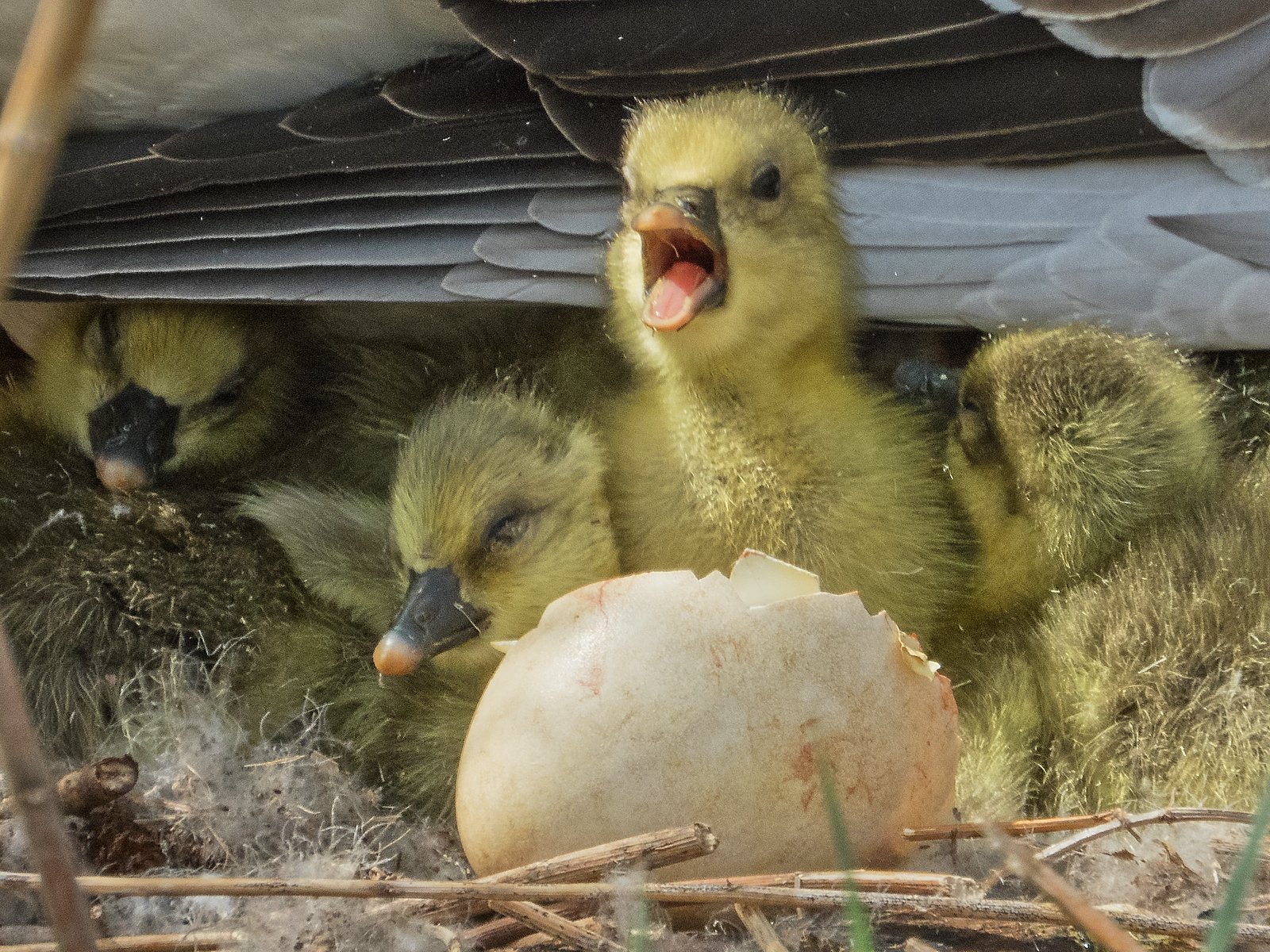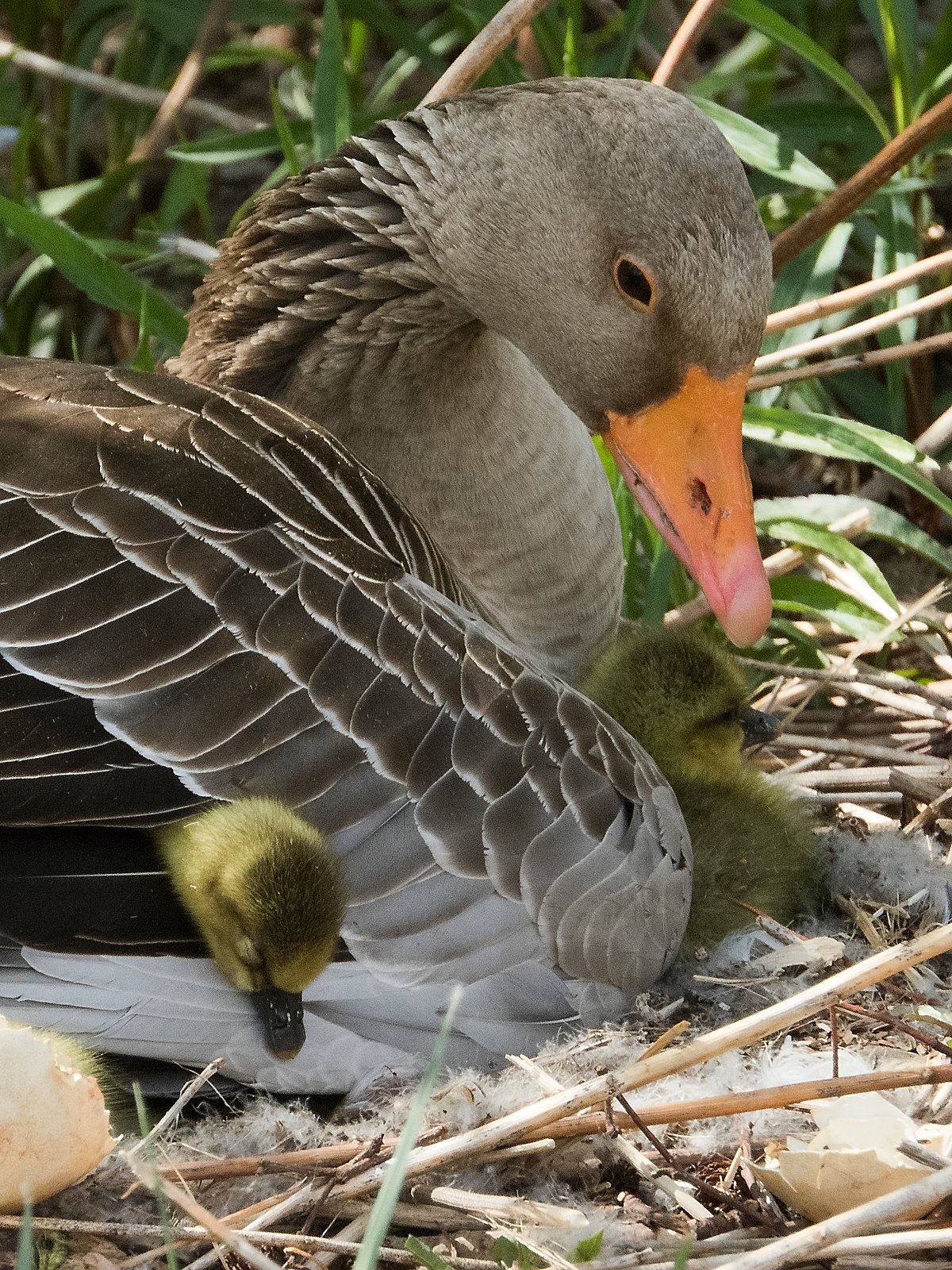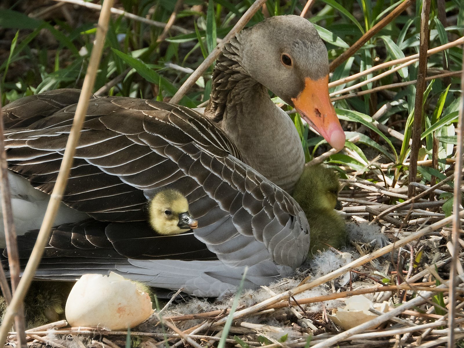 Gössel machen sich selbständig und finden nicht mehr so schnell zurück zum Nest. Konrad Lorenz im “Das Jahr der Graugans”: “Im Laufe des ersten Tages nach dem Schlüpfen werden die Jungen allmählich unruhig, kommen immer öfter unter der Mutter hervor und machen kleine Ausflüge, aber nur in die nächste Umgebung der noch auf dem Nest sitzenden Mutter.”