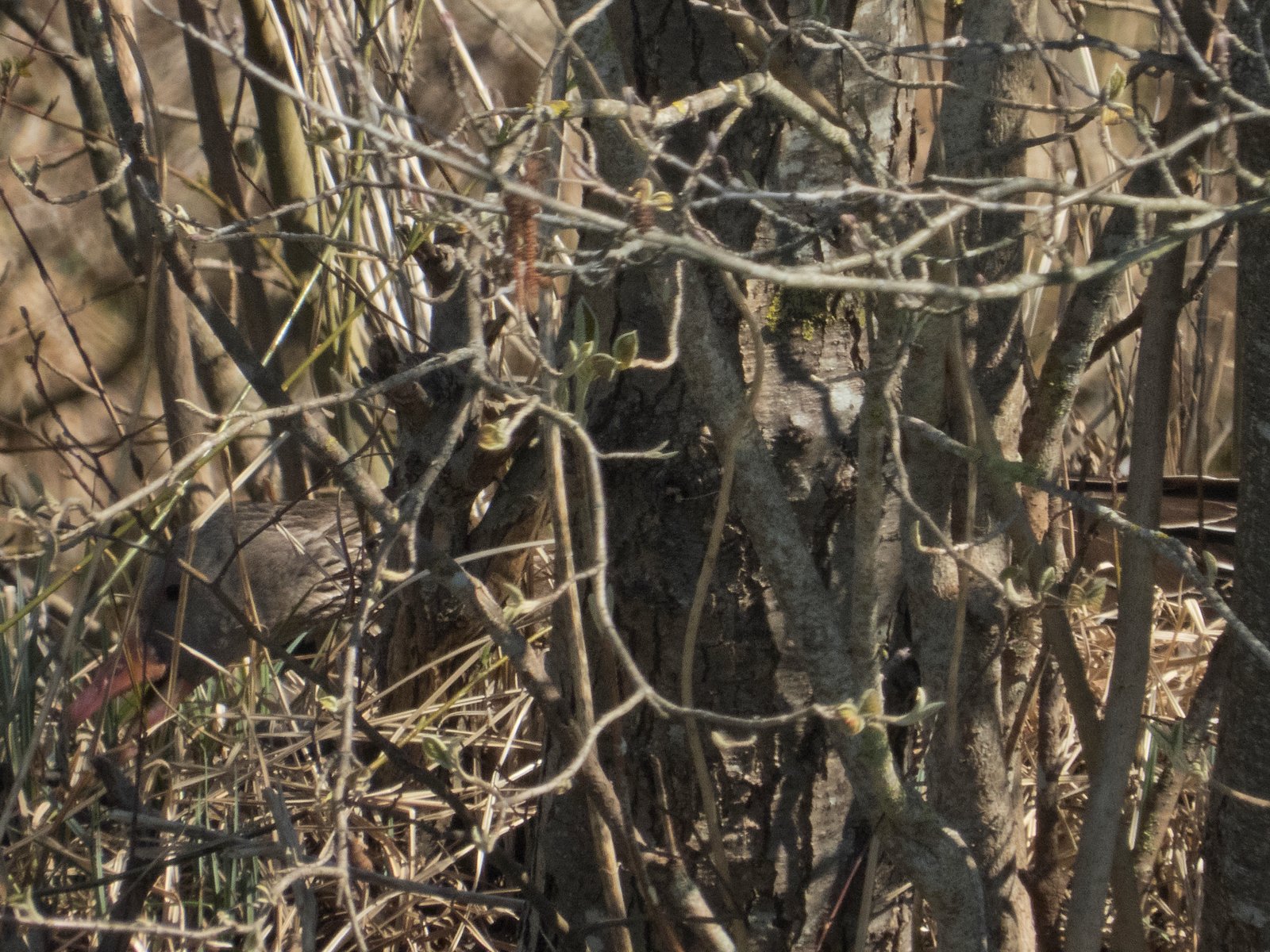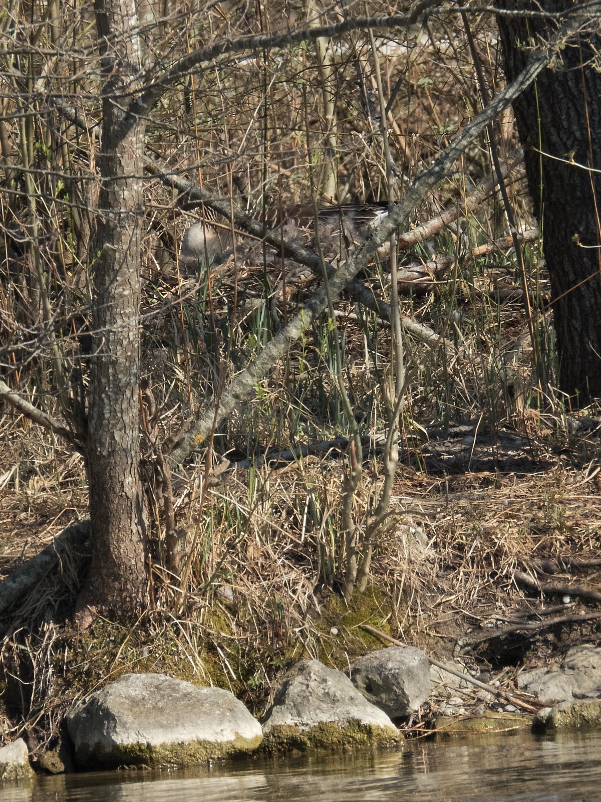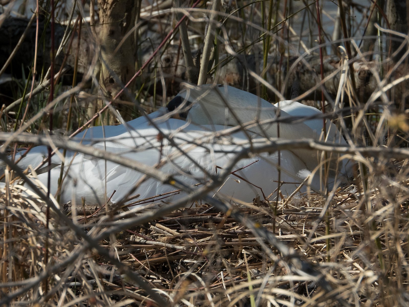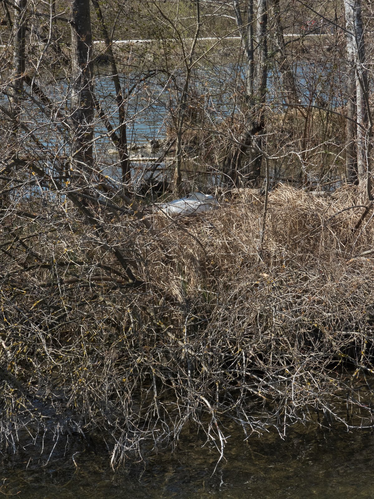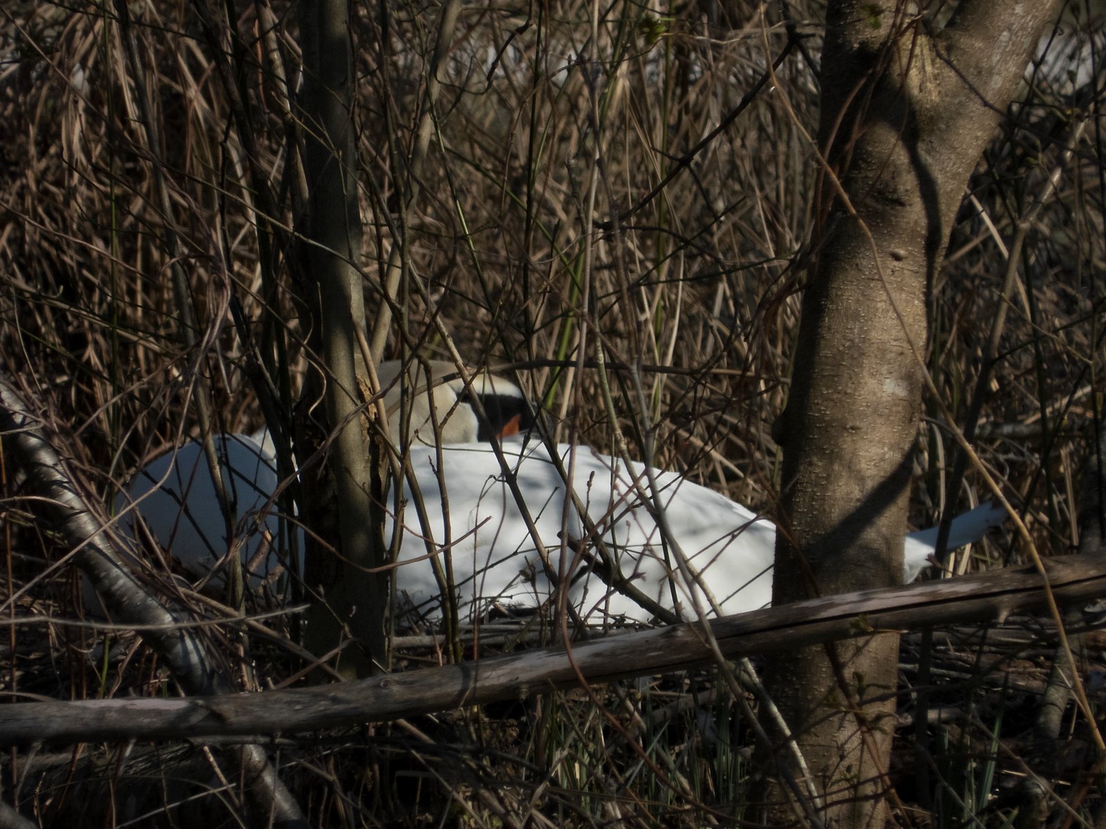 Bislang schlüpften, wie berichtet, zumindest bei drei Graugansfamilien Gössel. Derzeit sind acht Graugansnester besetzt. Die Feststellungen können sich natürlich immer nur auf die entdeckten Nester und Familien beziehen. Neben dem Schwanenpaar brüten noch zwei Kanadagänse, das dritte Kanadaganspaar lässt sich noch Zeit. Das Graugans-Gössel-Nest von gestern, 4. April, wurde heute von einer Graugans aufgesucht, geprüft und offenbar für gut befunden als neuer Nistplatz. Zeitweise wurde die Gans allerdings von anderen Graugänsen in der Nähe verjagt: