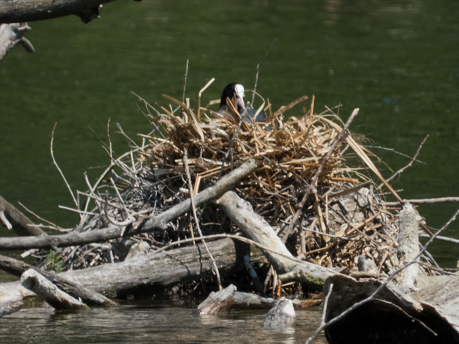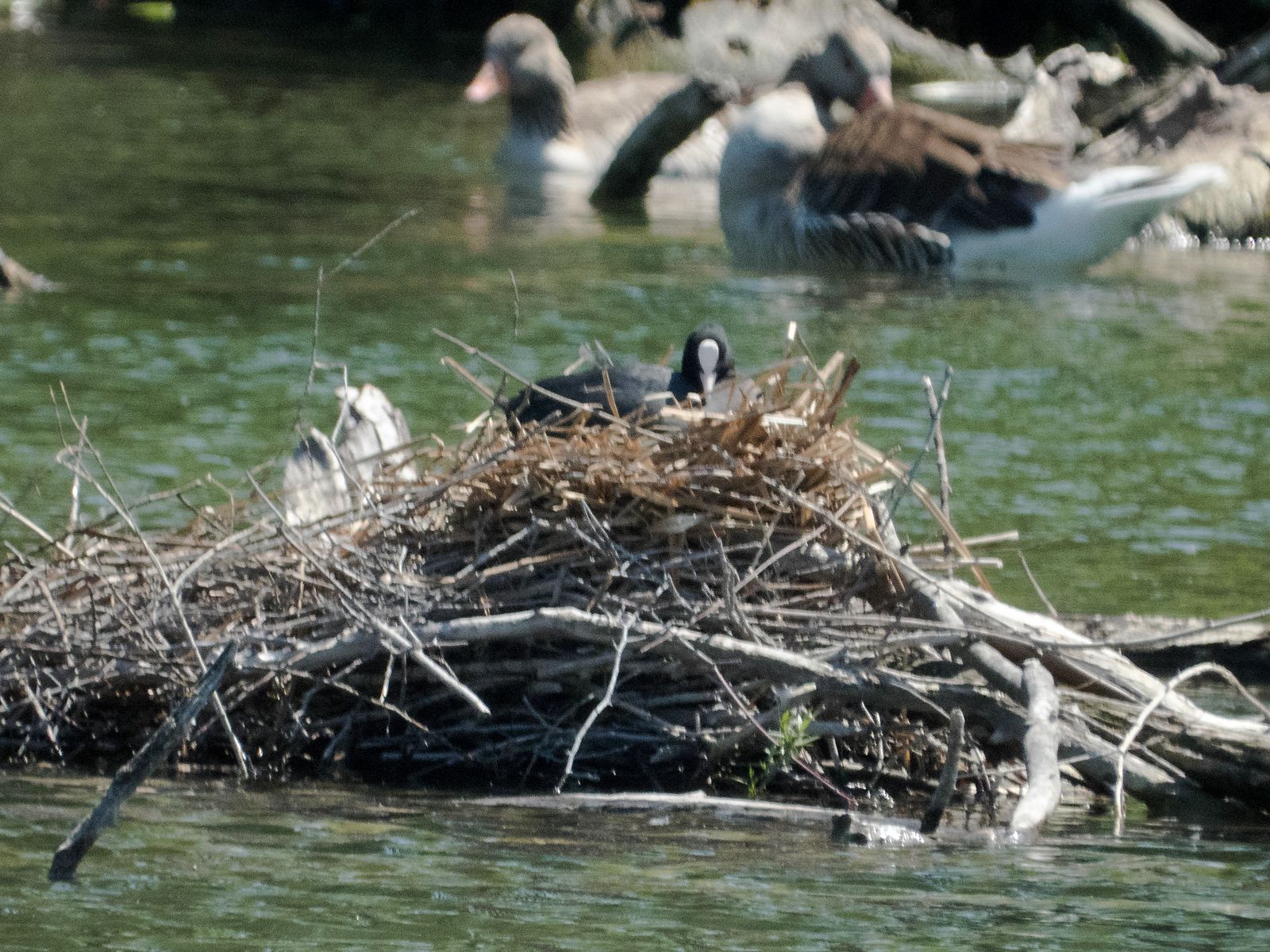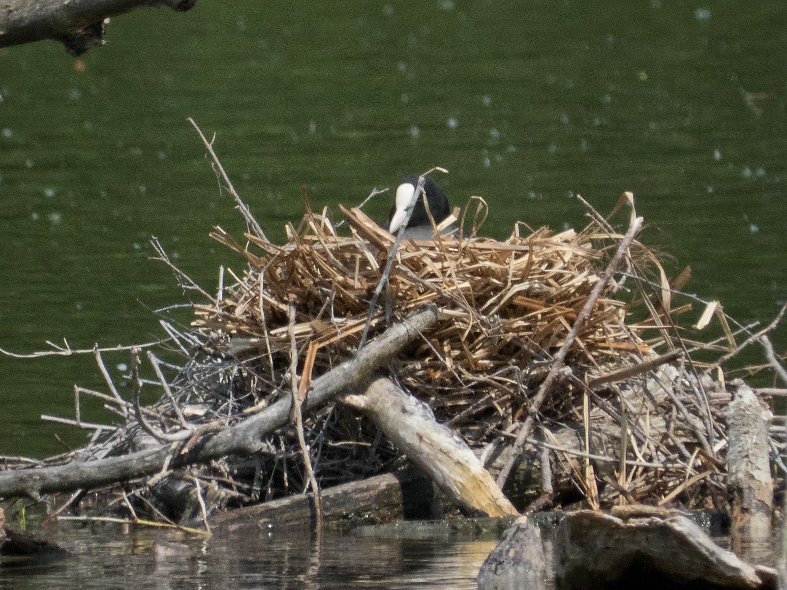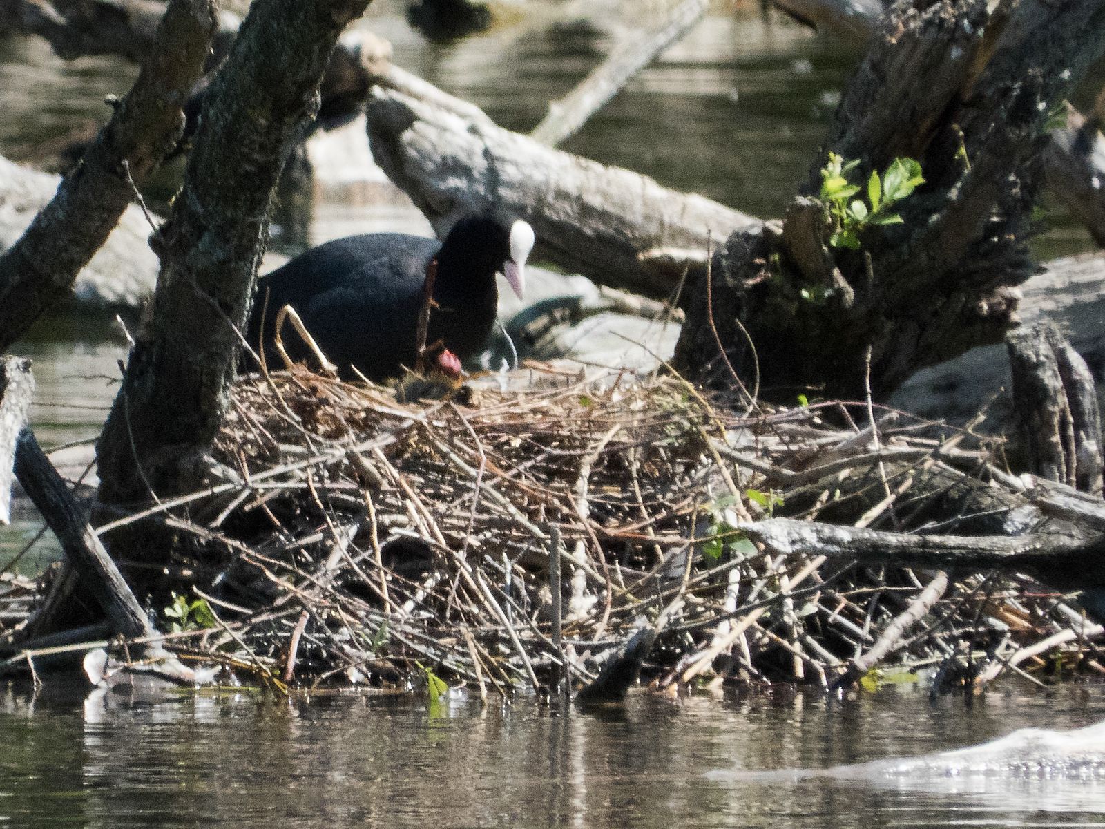 Blesshuhn-Nest im Amperstausee. Hier noch ohne Nachwuchs