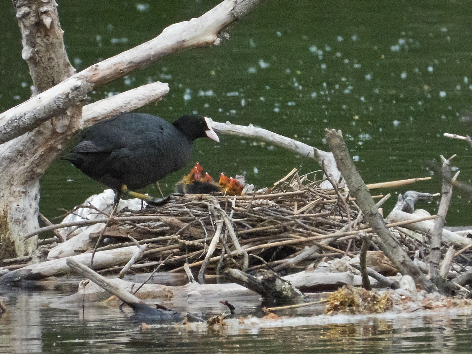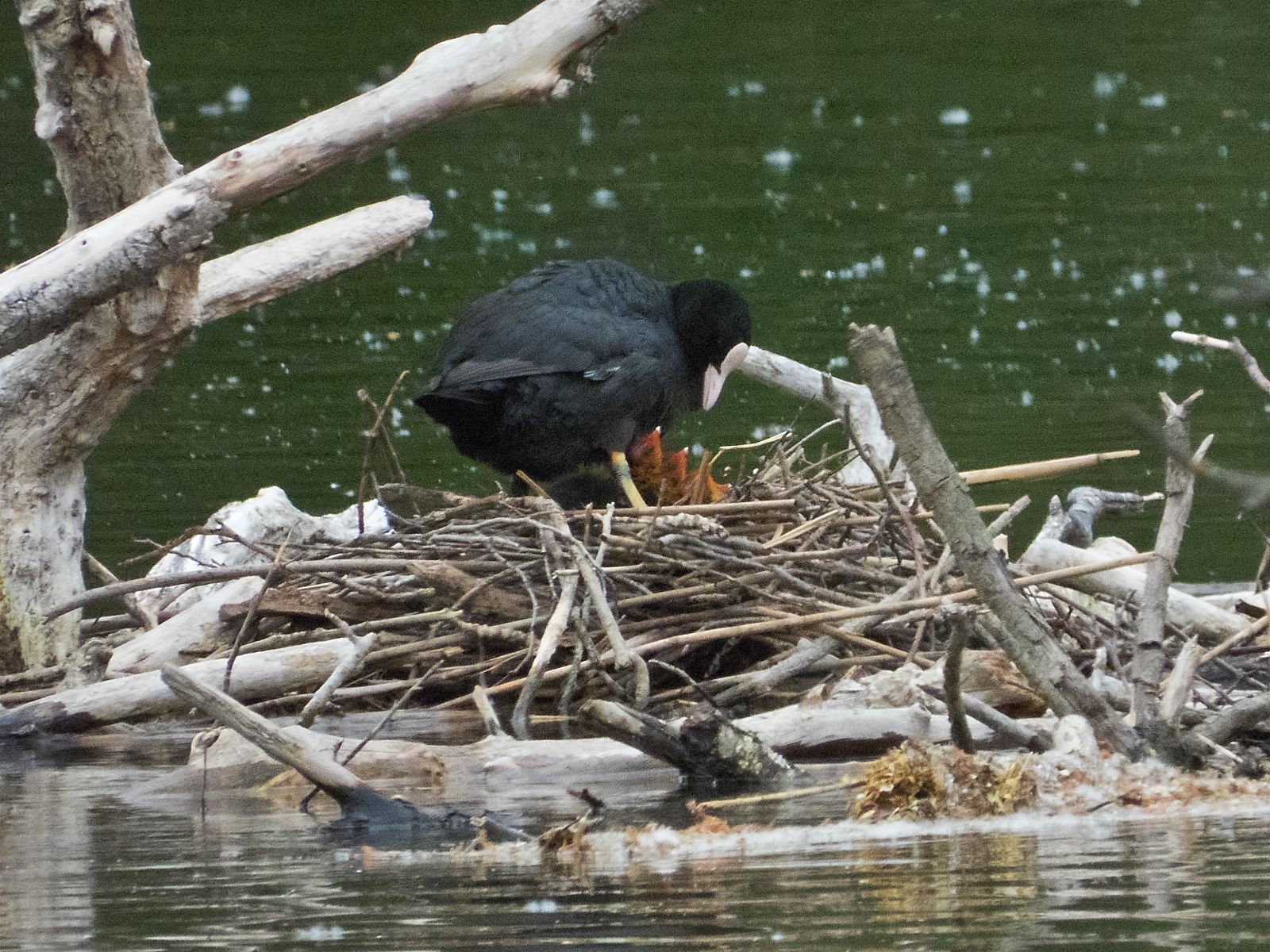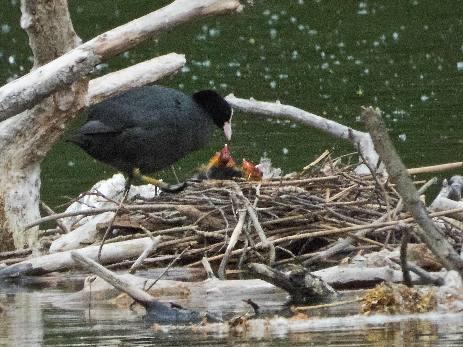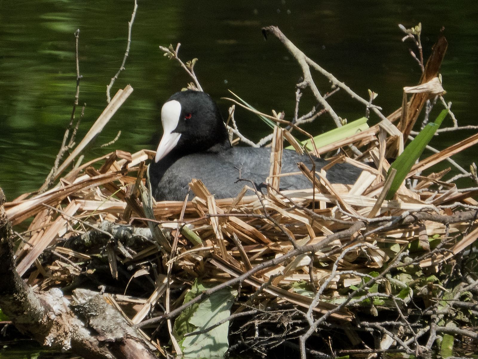 Blesshuhn-Nest im Amperstausee. Hier noch ohne Nachwuchs