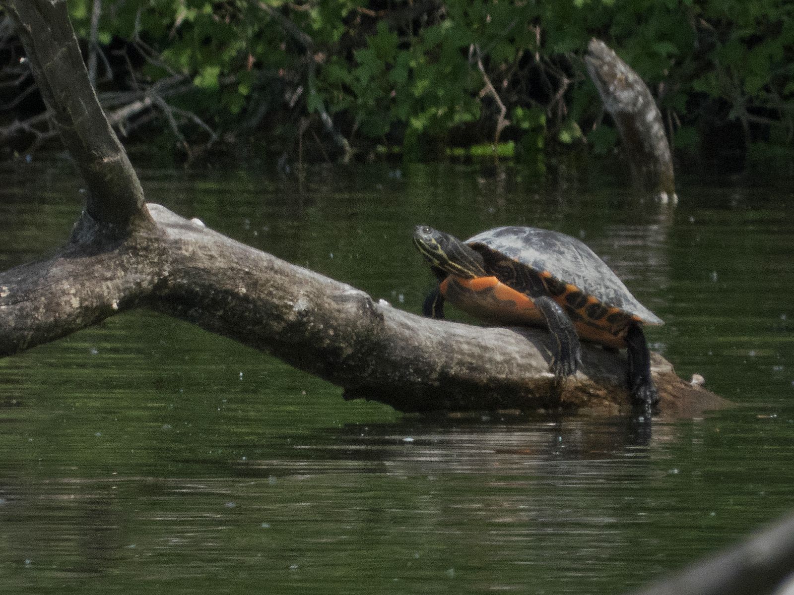 Wasserschildkröte heute auf Podest vor kleiner Insel