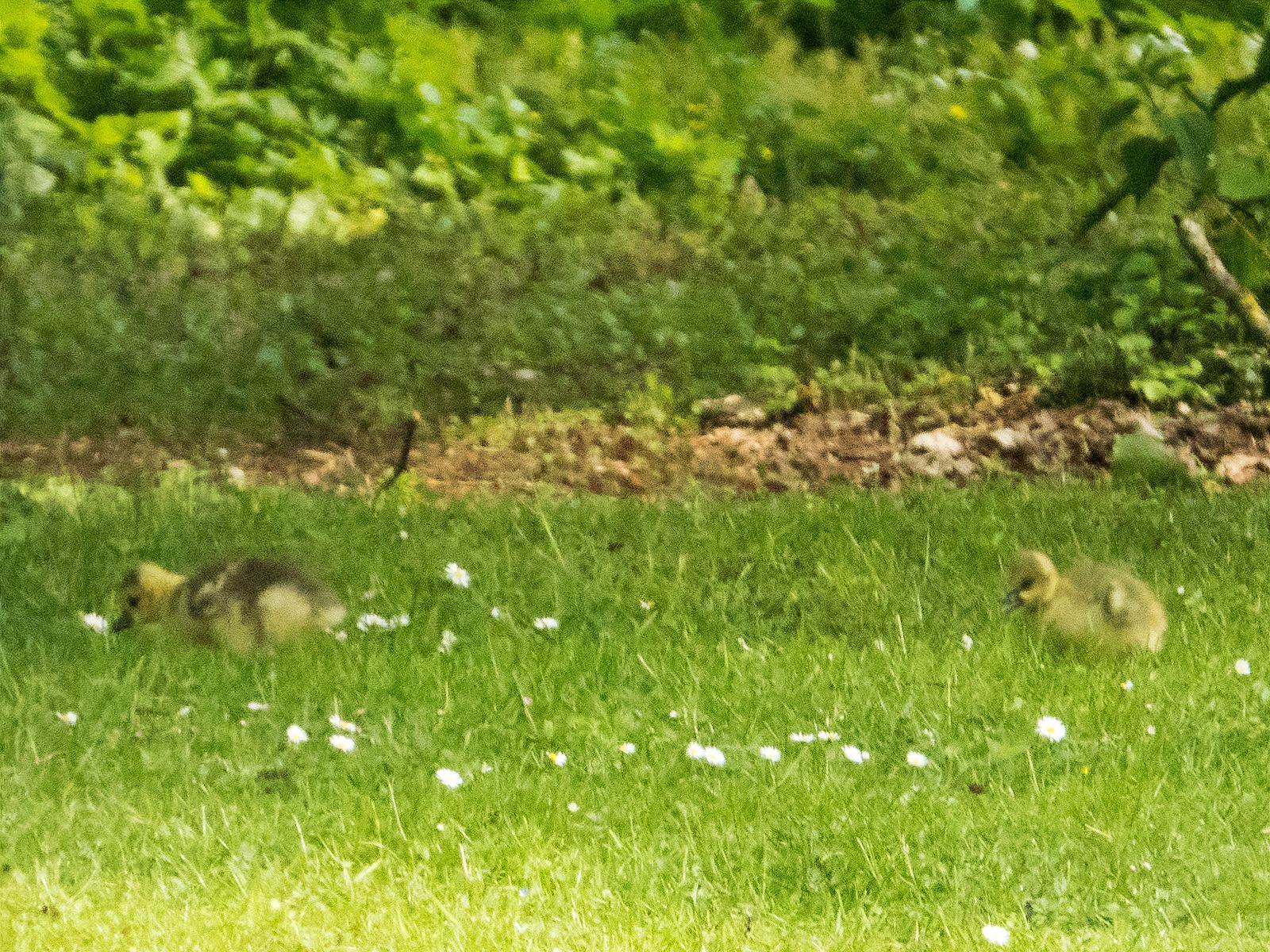 Das zweite Kanadaganspaar führte heute nur noch drei Gössel. Im Bild sind zwei Gössel zu sehen