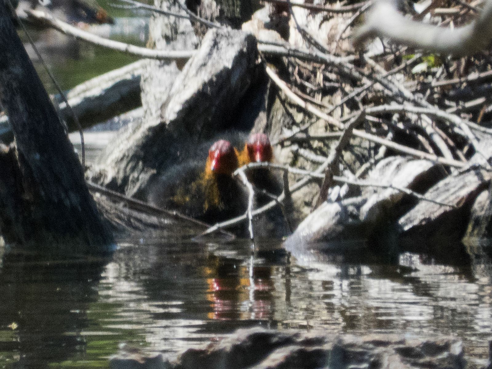 Aufnahme im Gegenlicht. Ein Blesshuhn-Nest
