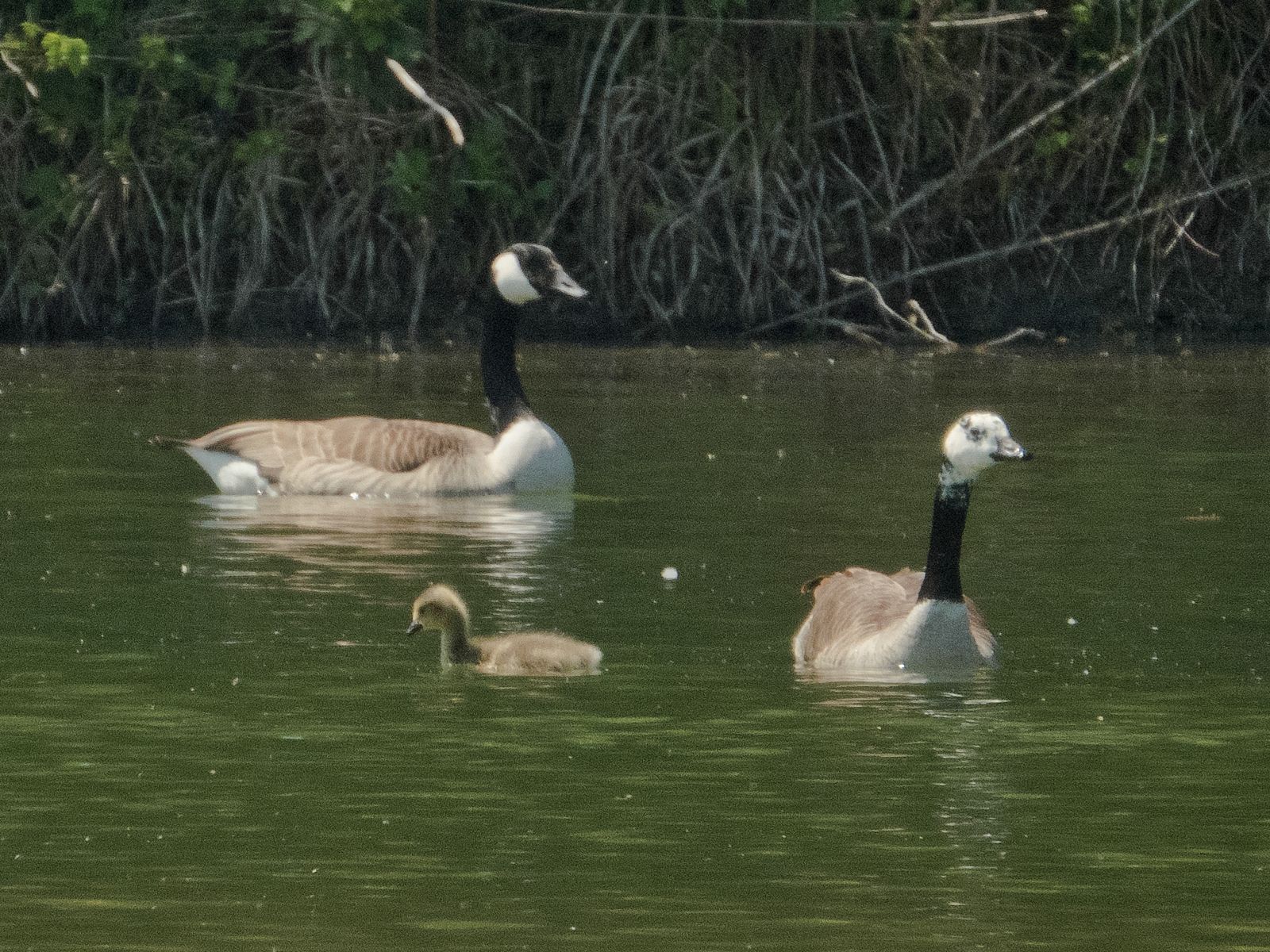 Kanadagans mit noch einem Gössel. Anfangs waren es deren drei