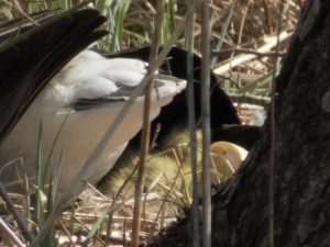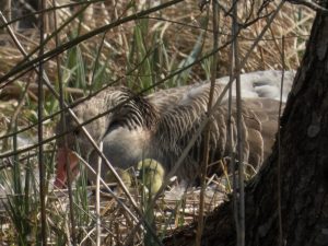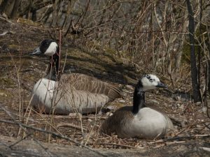 Von den drei Kanadagans-Paaren haben zwei Paare Platz am Nest bezogen. Ein drittes Paar verteidigt nach wie vor “ihre” Insel; Nestbau hier noch nicht beobachtet.