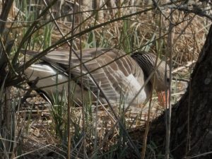 Mittlerweile sind es neun besetzte Graugansnester am Amperstausee. Und in einem Nest – aus weiter Entfernung (gegenüberliegendes Ufer) beobachtet – kamen Graugansgössel zum Vorschein, von der Gans im Nest unter die Fittiche genommen. Entdeckt am heutigen Tage wurden zwei neue Graugansnester und ein offenbar verlassener Nistplatz – vielleicht das Nest der sechs Gössel vom 2. April 2020. Die neuen Plätze liegen allesamt auch auf der Insel mit dem heutigen Gössel-Nest. Es wären dann insgesamt vier Nester auf einer einzigen Insel – belegt mit Gänsen im Nest derzeit drei Plätze. In der Mitte des Amperstausees und weiter südlich – bei der Insel neben der Eisenbahnbrücke – sind noch weitere vier Nistplätze sichtbar. Dazu kommen im nördlichen Bereich des Sees noch zwei weitere Graugansnester hinzu. Insgesamt also neun Graugansnester. Und hier und dort streifen auf Inseln Graugänse umher, offensichtlich auf der Suche nach Brutmöglichkeit. Nicht selten gibt es aber Ärger mit den in der Nähe schon brütenden Graugänsen.