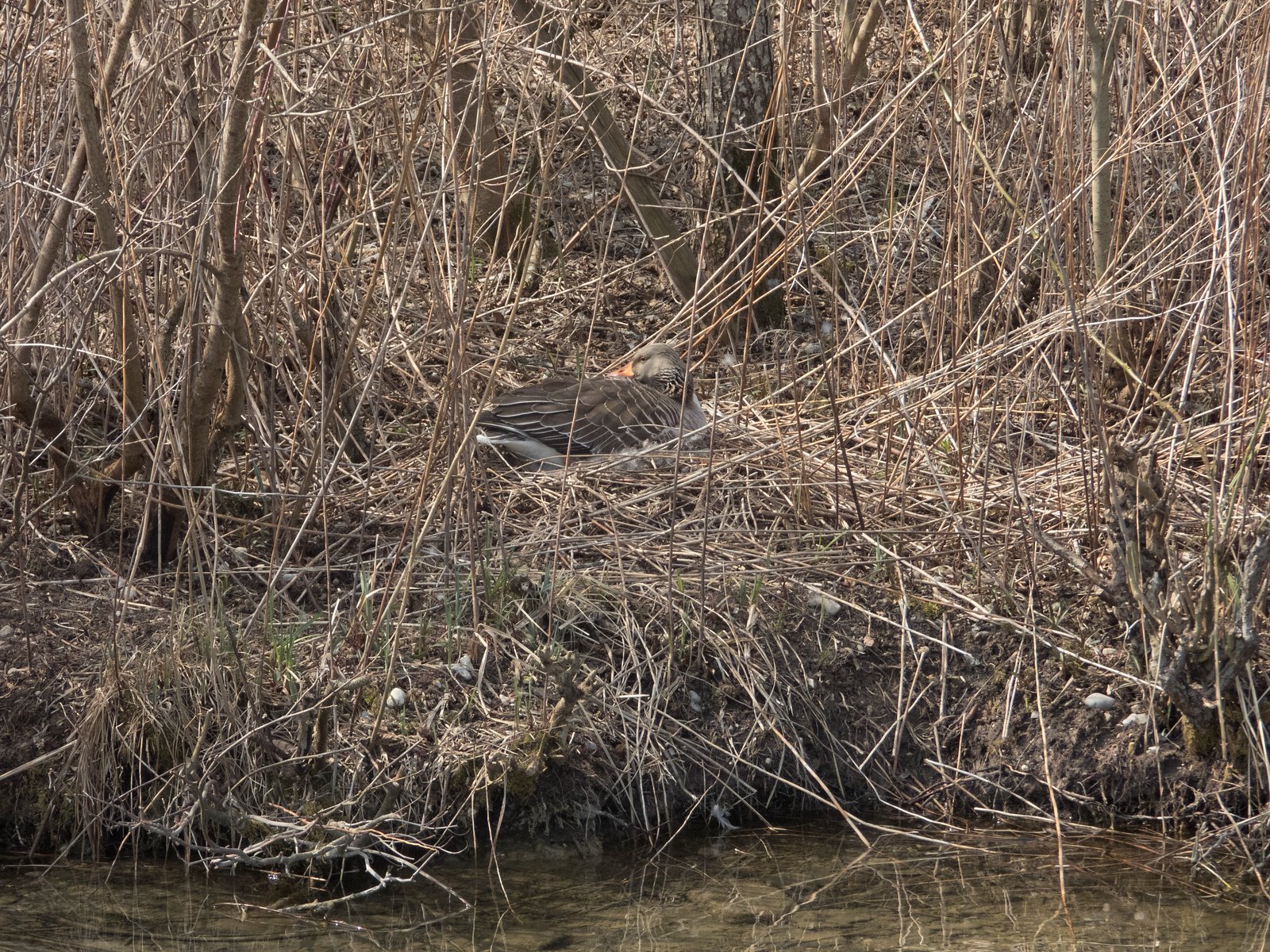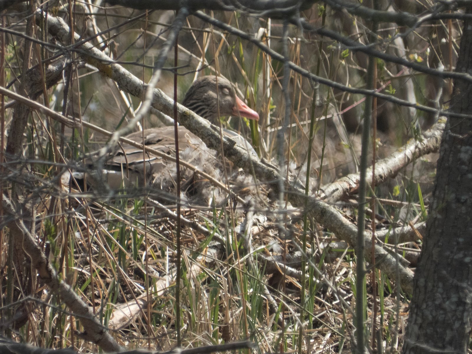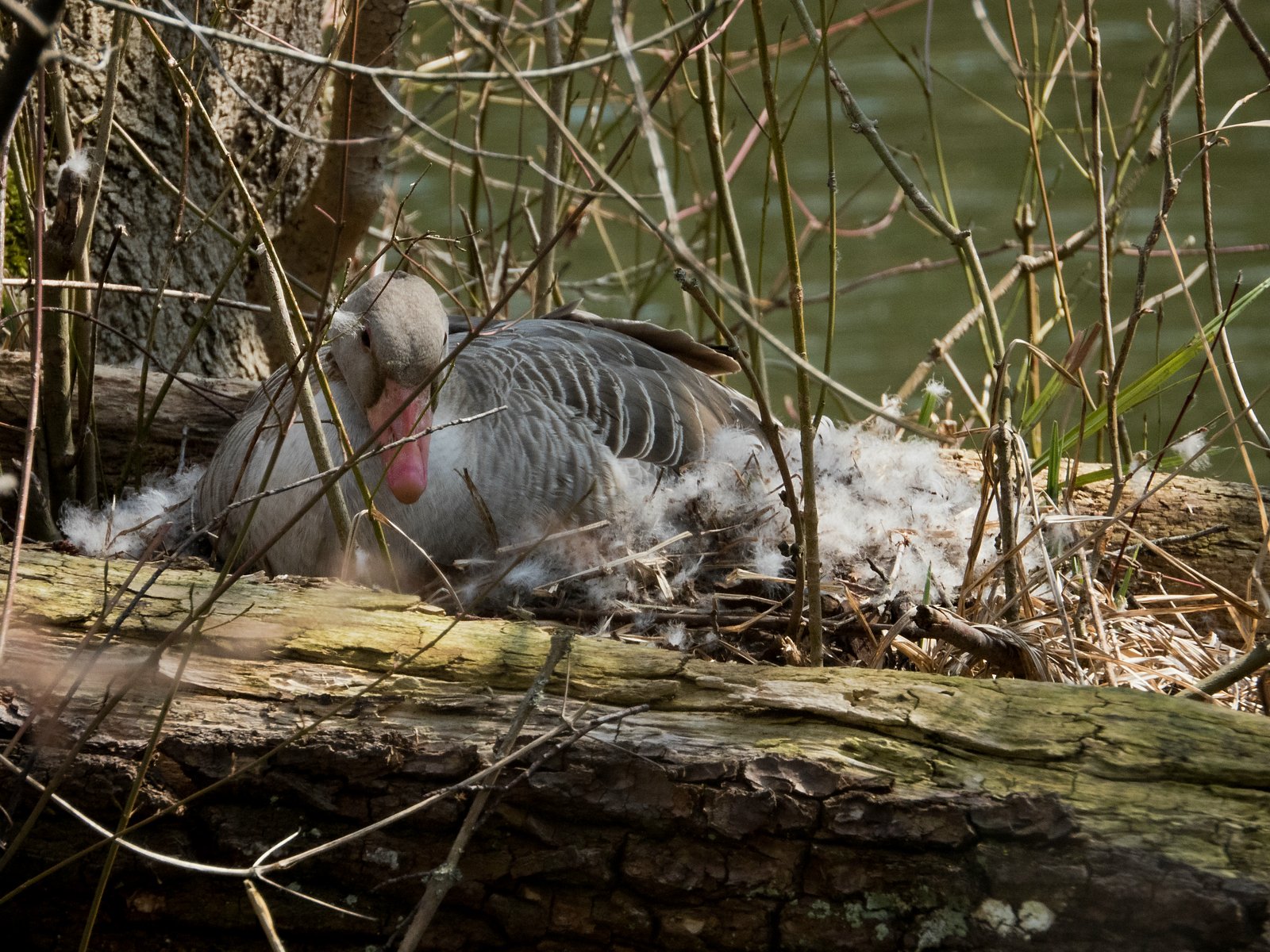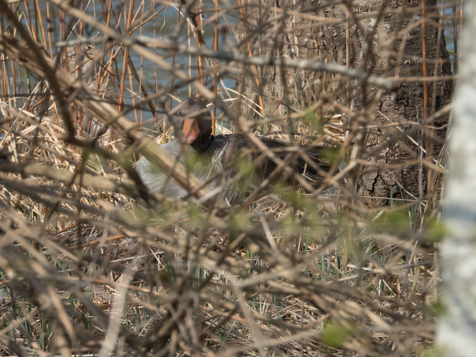 Mittlerweile sind es neun besetzte Graugansnester am Amperstausee. Und in einem Nest – aus weiter Entfernung (gegenüberliegendes Ufer) beobachtet – kamen Graugansgössel zum Vorschein, von der Gans im Nest unter die Fittiche genommen. Entdeckt am heutigen Tage wurden zwei neue Graugansnester und ein offenbar verlassener Nistplatz – vielleicht das Nest der sechs Gössel vom 2. April 2020. Die neuen Plätze liegen allesamt auch auf der Insel mit dem heutigen Gössel-Nest. Es wären dann insgesamt vier Nester auf einer einzigen Insel – belegt mit Gänsen im Nest derzeit drei Plätze. In der Mitte des Amperstausees und weiter südlich – bei der Insel neben der Eisenbahnbrücke – sind noch weitere vier Nistplätze sichtbar. Dazu kommen im nördlichen Bereich des Sees noch zwei weitere Graugansnester hinzu. Insgesamt also neun Graugansnester. Und hier und dort streifen auf Inseln Graugänse umher, offensichtlich auf der Suche nach Brutmöglichkeit. Nicht selten gibt es aber Ärger mit den in der Nähe schon brütenden Graugänsen.