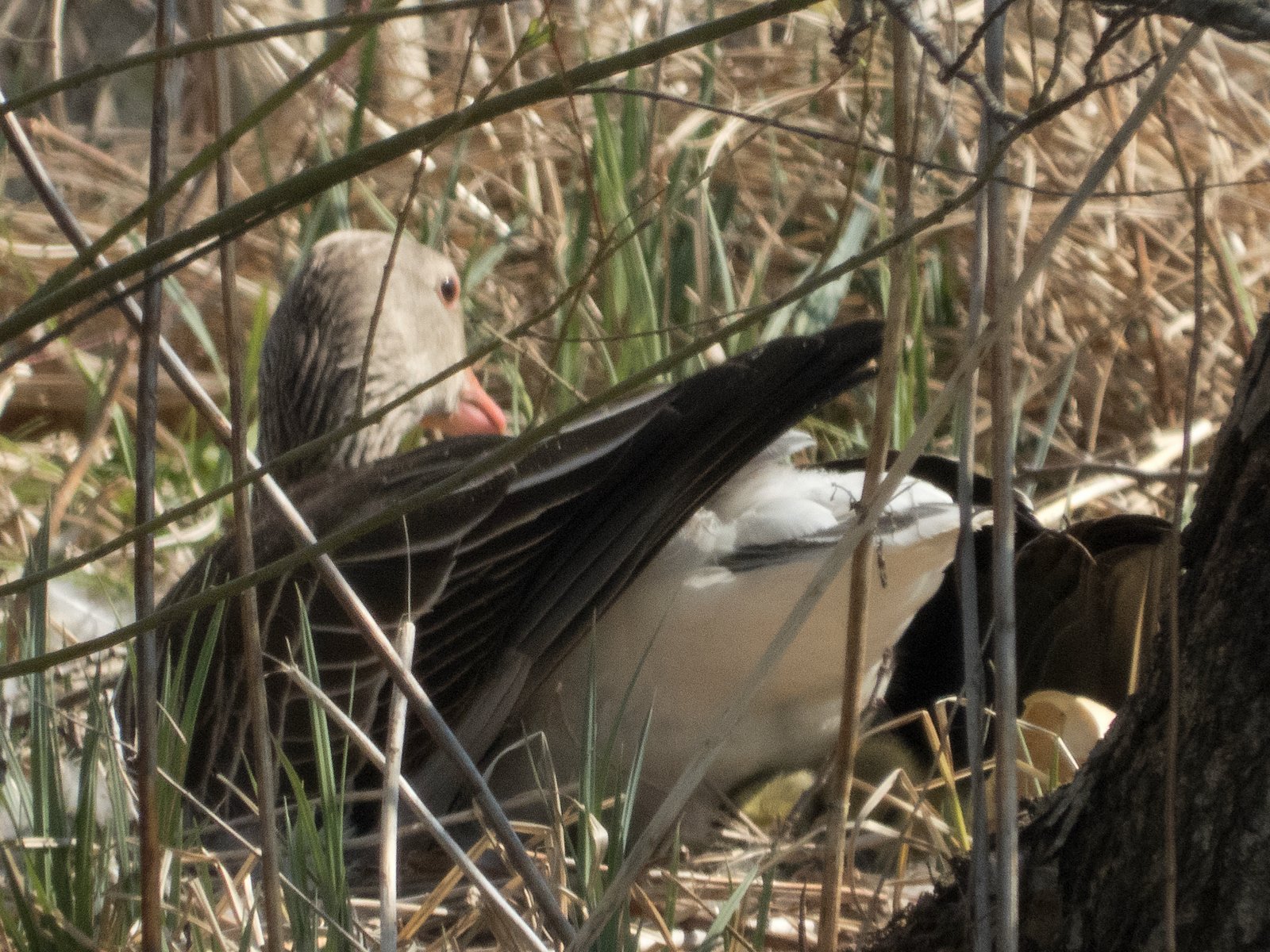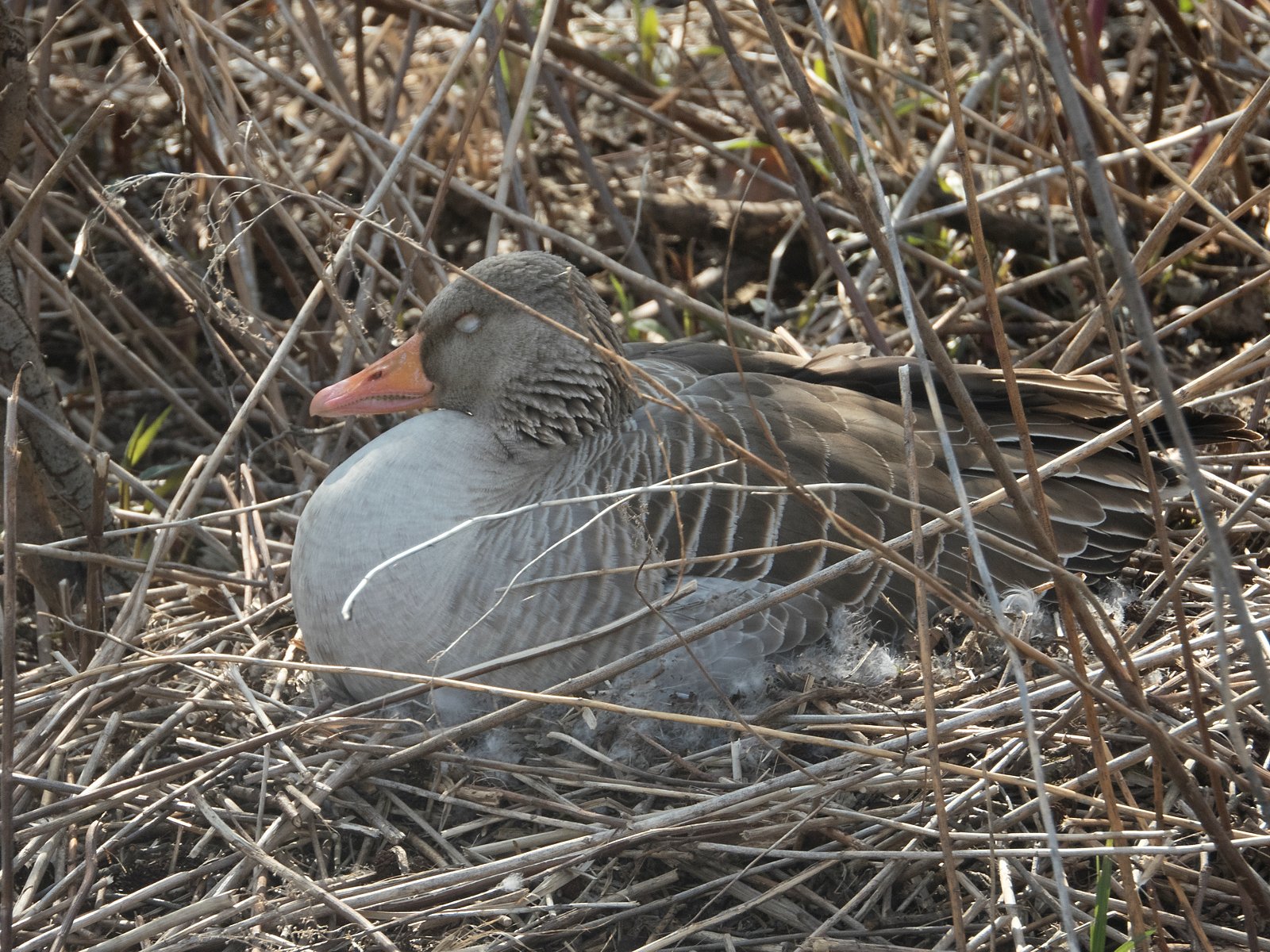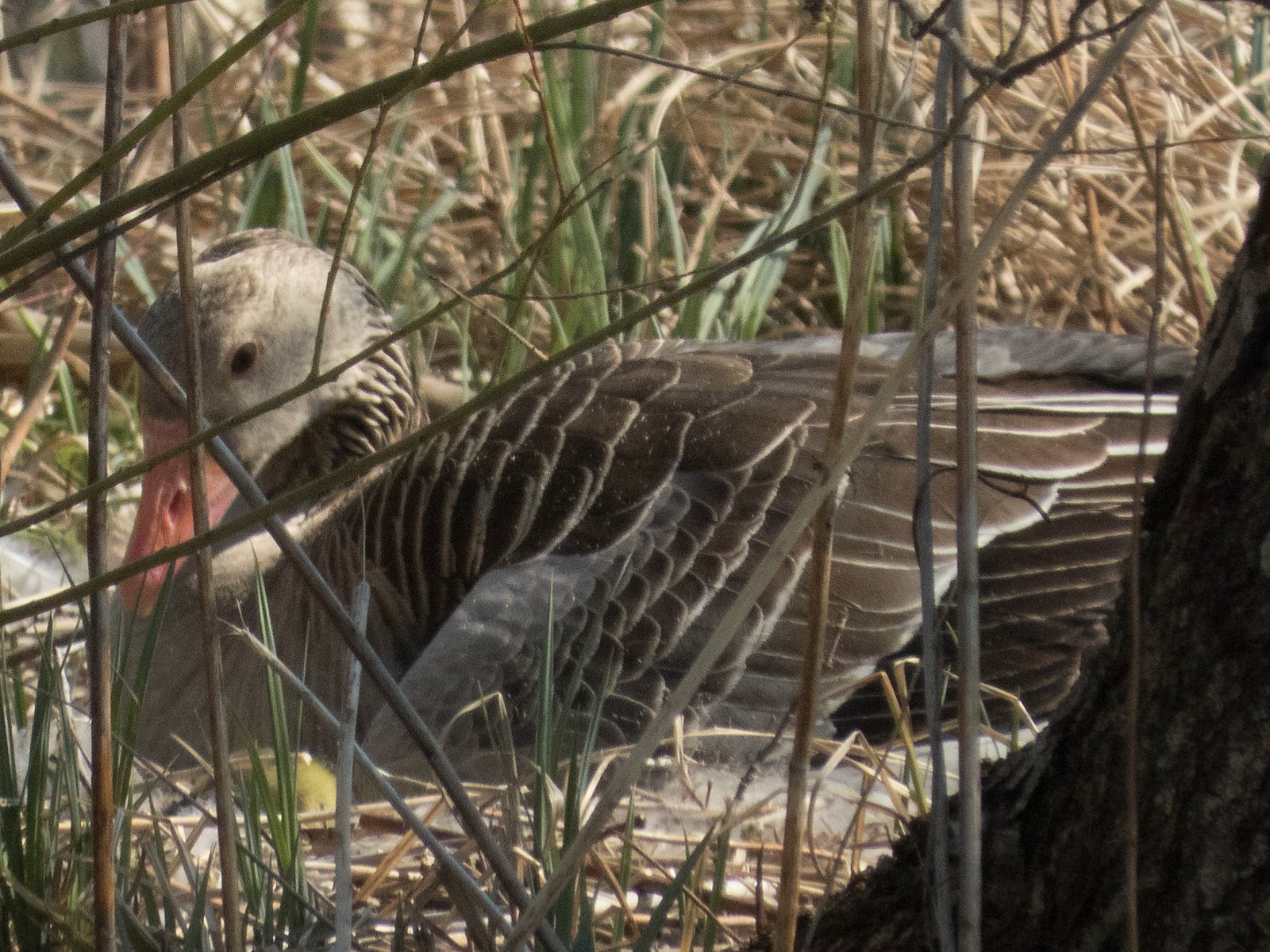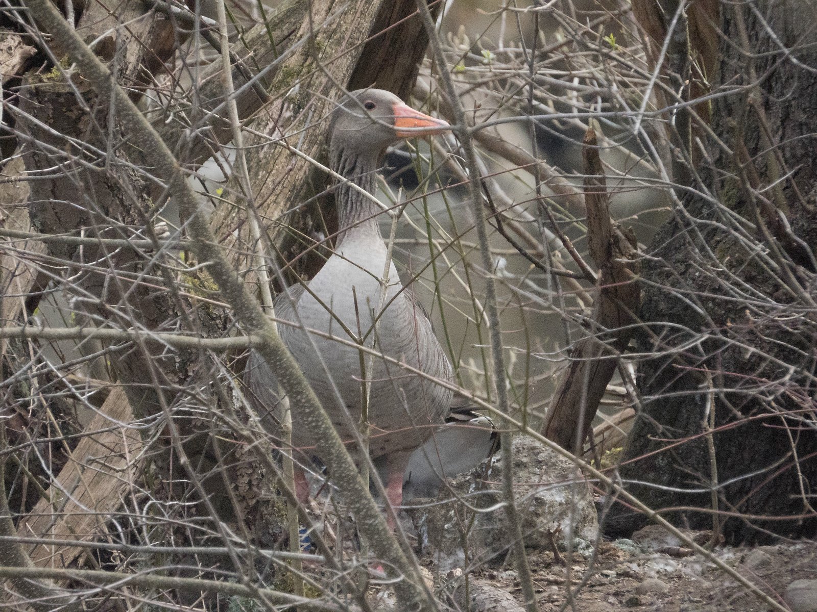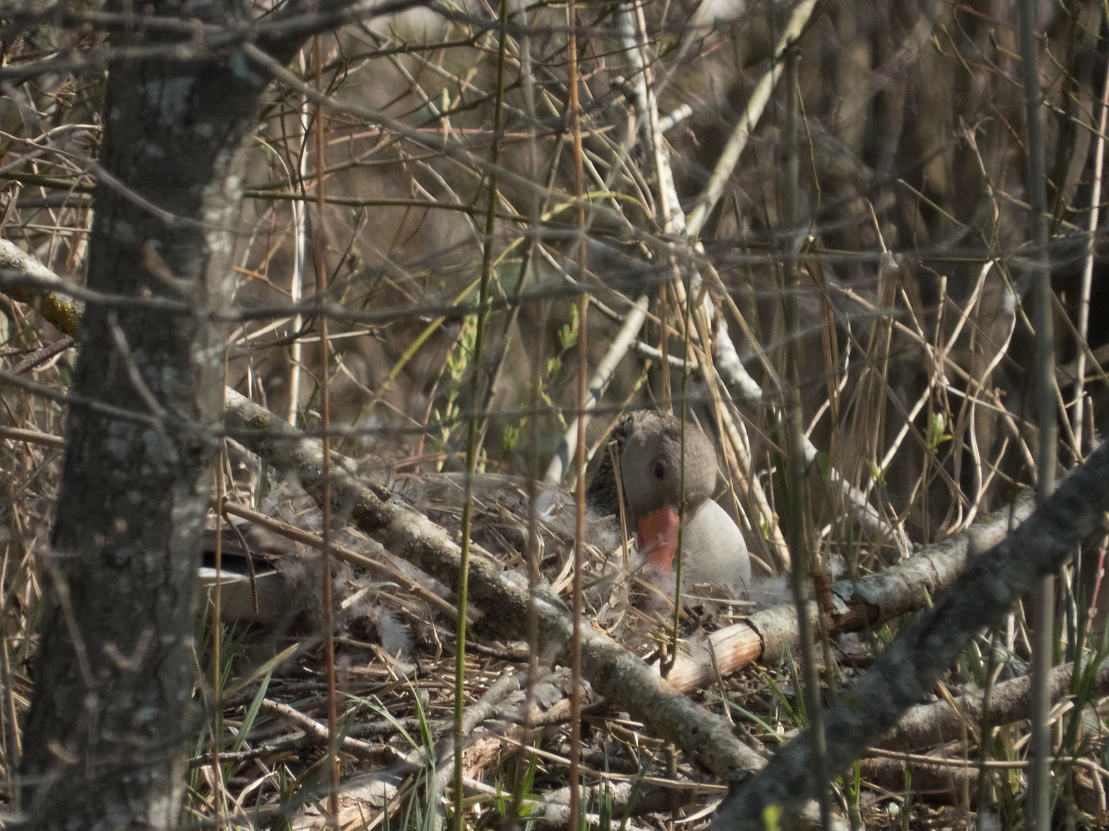 Mittlerweile sind es neun besetzte Graugansnester am Amperstausee. Und in einem Nest – aus weiter Entfernung (gegenüberliegendes Ufer) beobachtet – kamen Graugansgössel zum Vorschein, von der Gans im Nest unter die Fittiche genommen. Entdeckt am heutigen Tage wurden zwei neue Graugansnester und ein offenbar verlassener Nistplatz – vielleicht das Nest der sechs Gössel vom 2. April 2020. Die neuen Plätze liegen allesamt auch auf der Insel mit dem heutigen Gössel-Nest. Es wären dann insgesamt vier Nester auf einer einzigen Insel – belegt mit Gänsen im Nest derzeit drei Plätze. In der Mitte des Amperstausees und weiter südlich – bei der Insel neben der Eisenbahnbrücke – sind noch weitere vier Nistplätze sichtbar. Dazu kommen im nördlichen Bereich des Sees noch zwei weitere Graugansnester hinzu. Insgesamt also neun Graugansnester. Und hier und dort streifen auf Inseln Graugänse umher, offensichtlich auf der Suche nach Brutmöglichkeit. Nicht selten gibt es aber Ärger mit den in der Nähe schon brütenden Graugänsen.