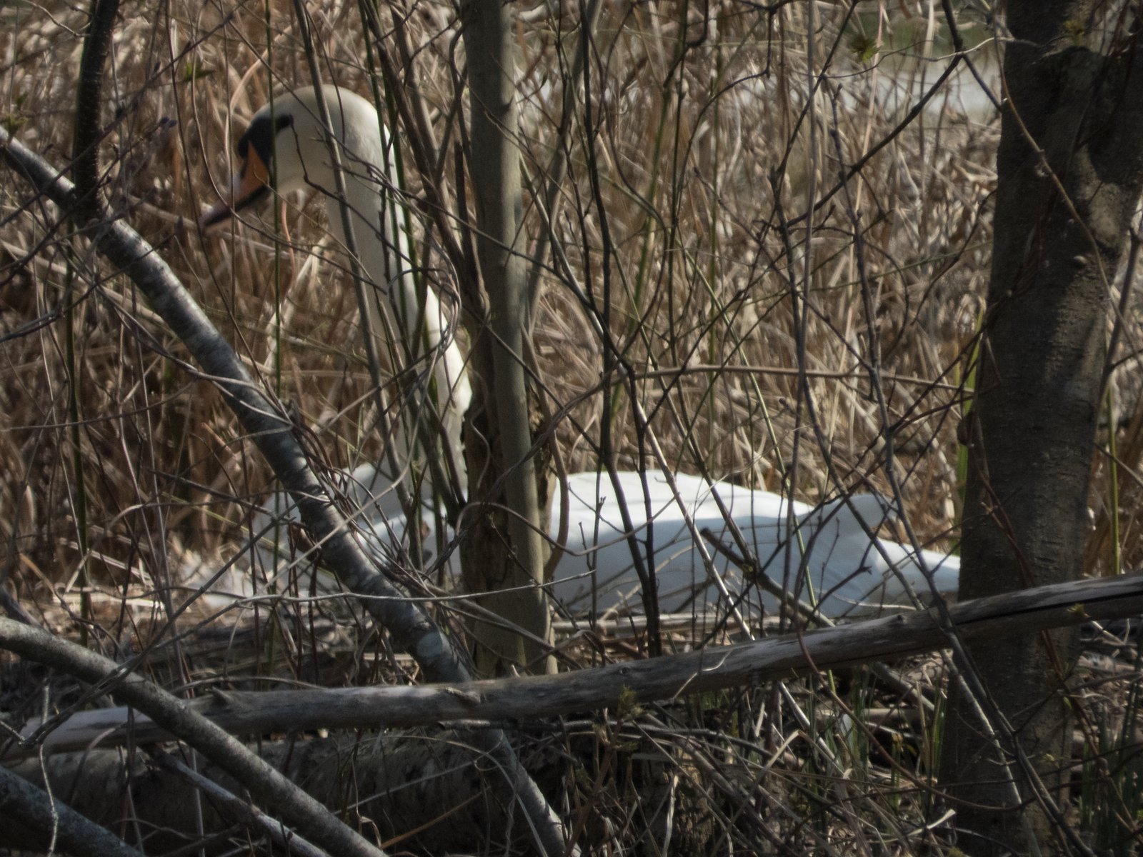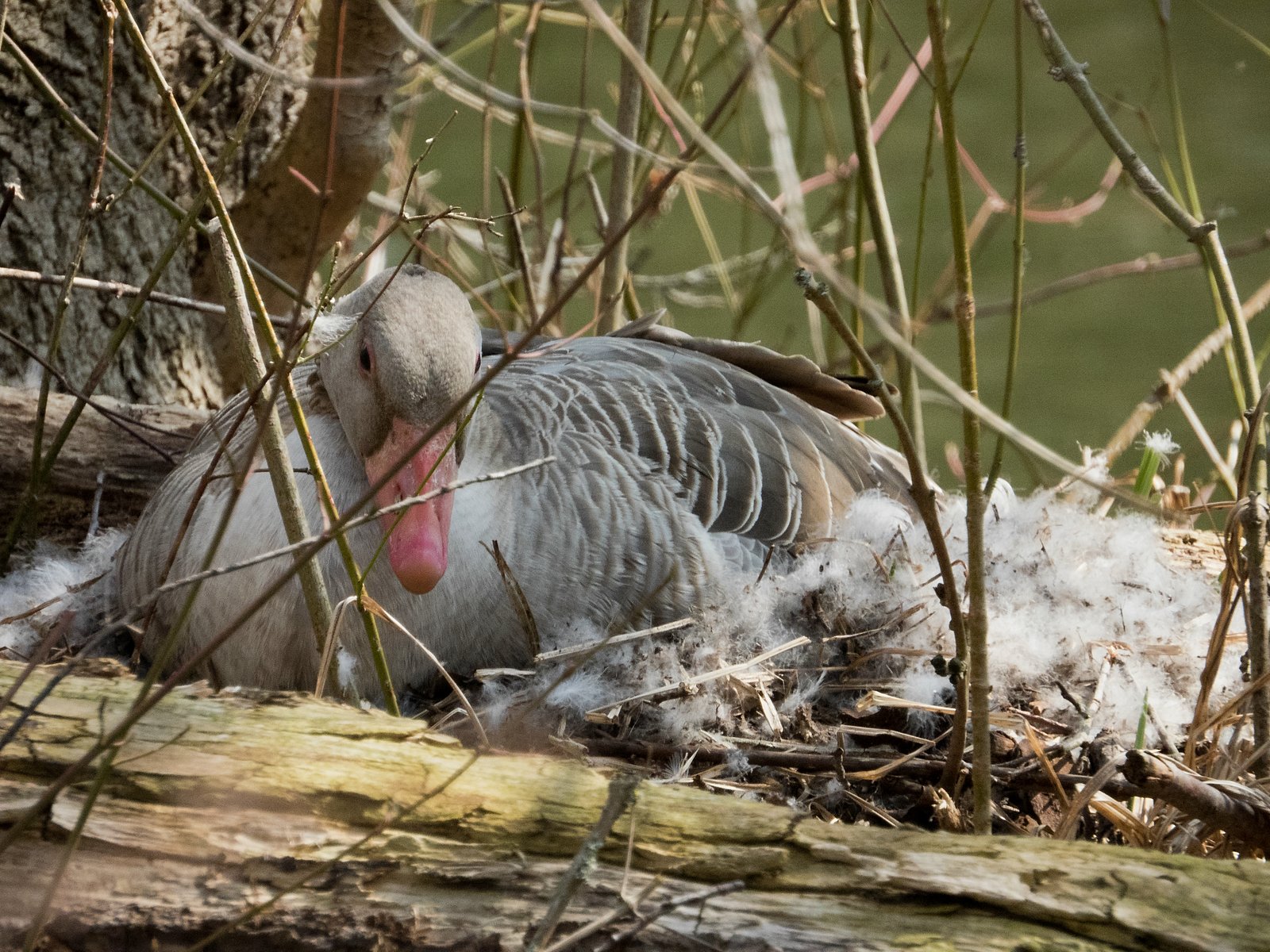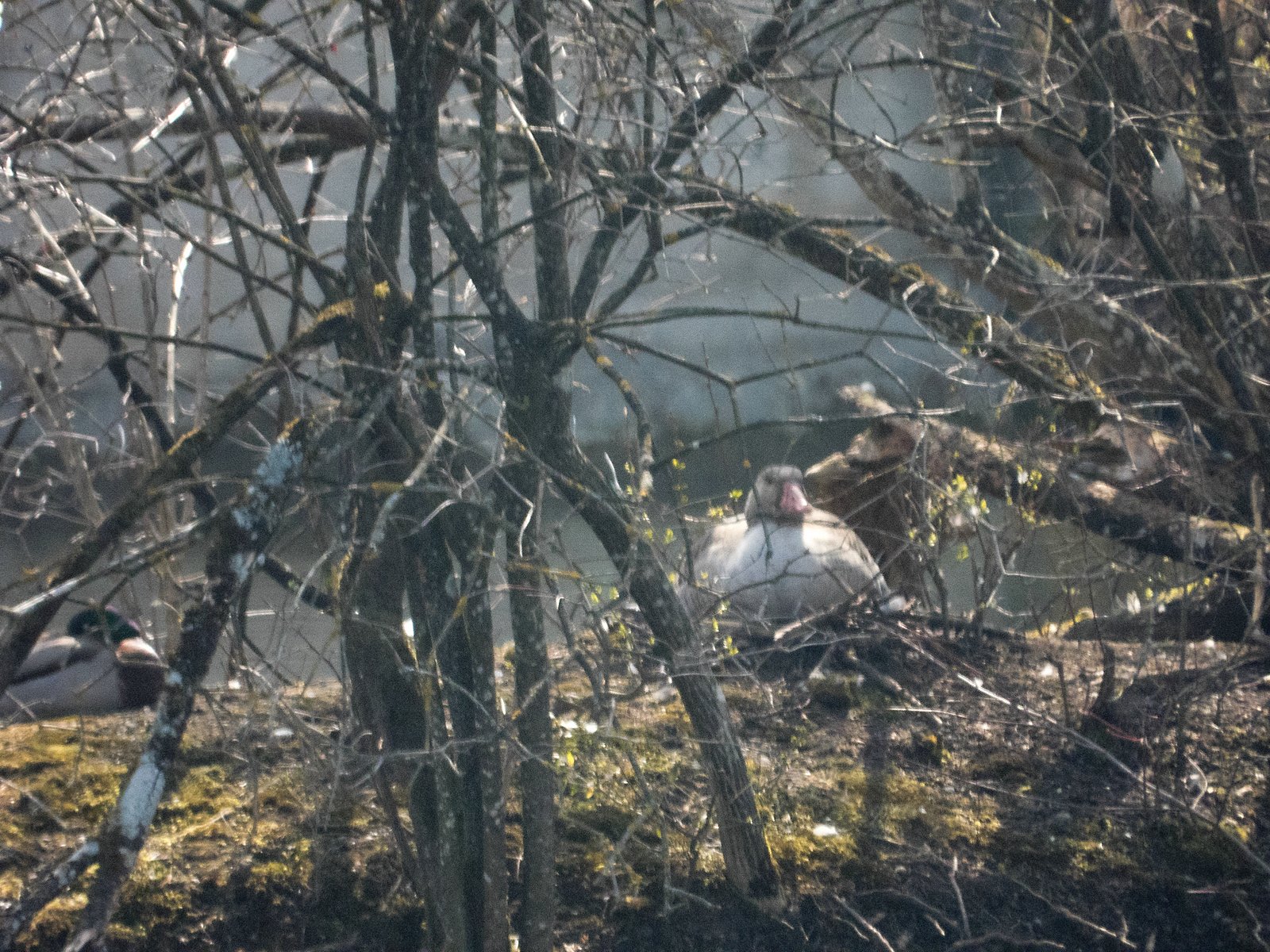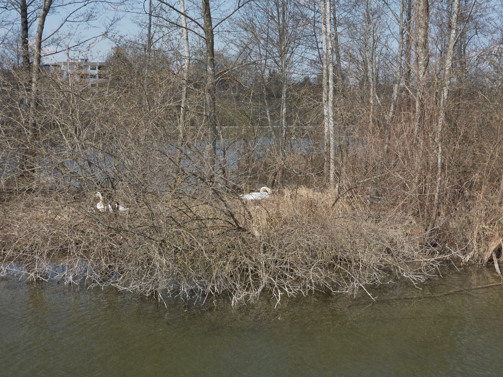Von den drei Kanadagans-Paaren haben zwei Paare Platz am Nest bezogen. Ein drittes Paar verteidigt nach wie vor “ihre” Insel; Nestbau hier noch nicht beobachtet.