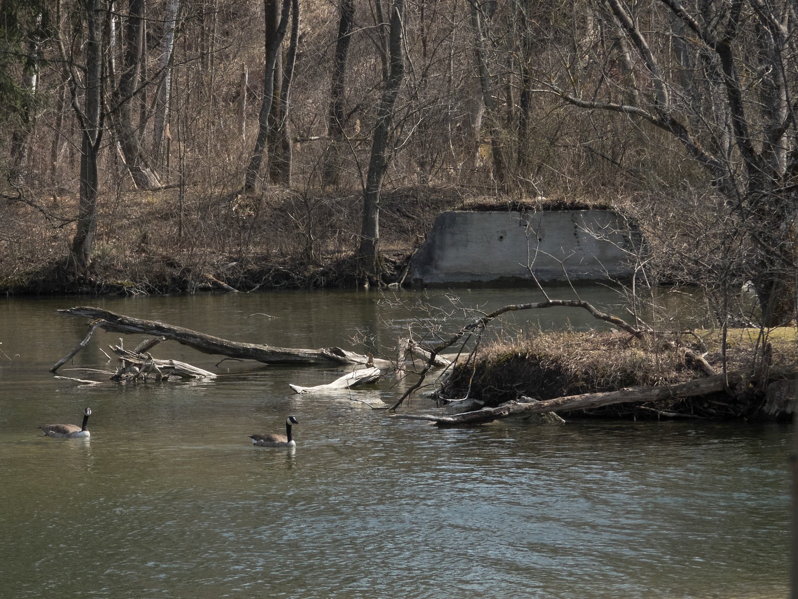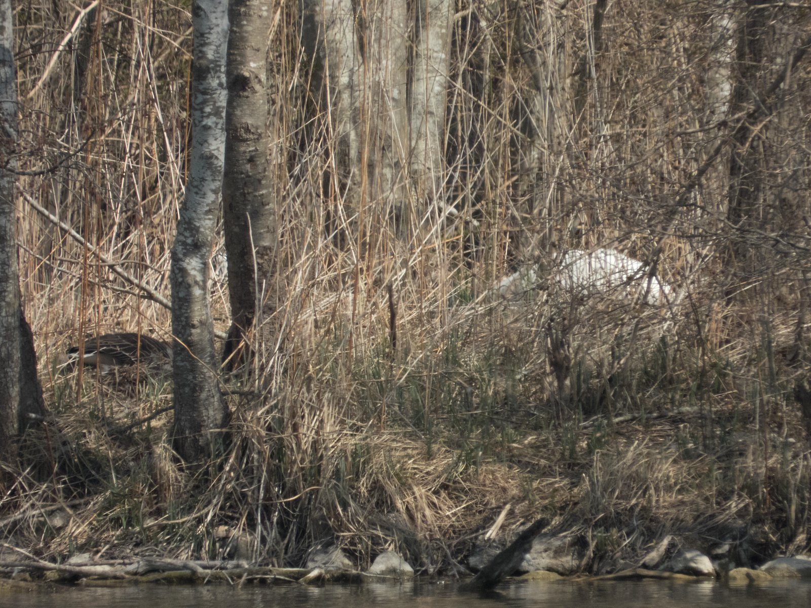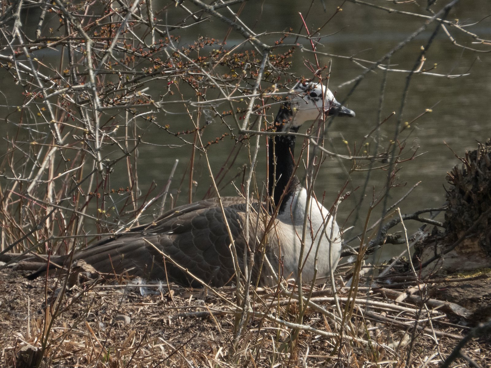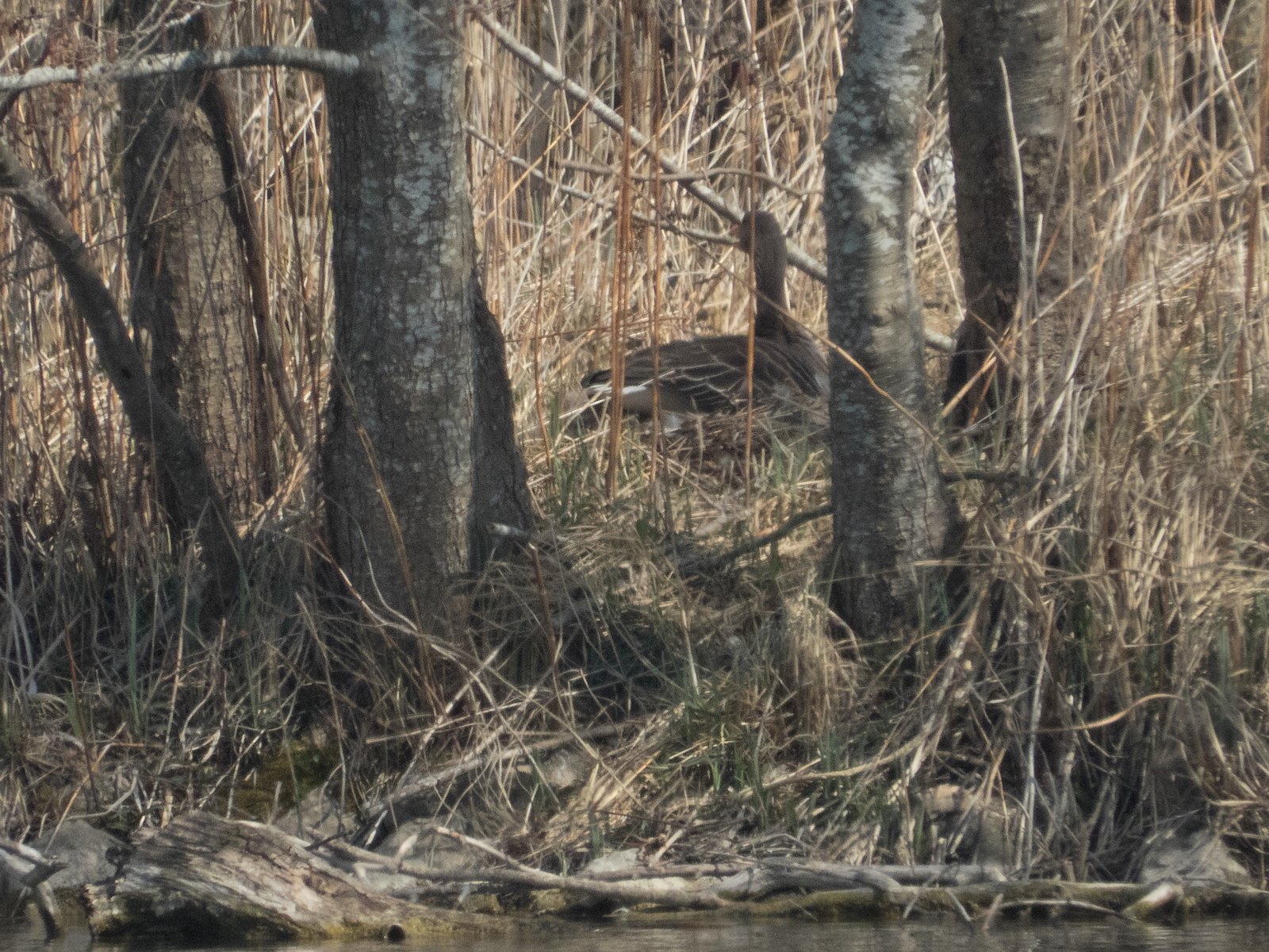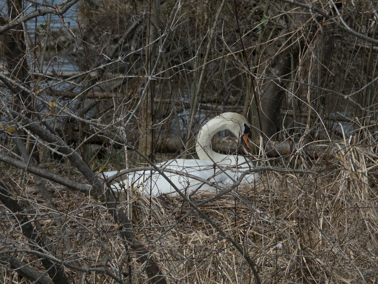 Von den drei Kanadagans-Paaren haben zwei Paare Platz am Nest bezogen. Ein drittes Paar verteidigt nach wie vor “ihre” Insel; Nestbau hier noch nicht beobachtet.