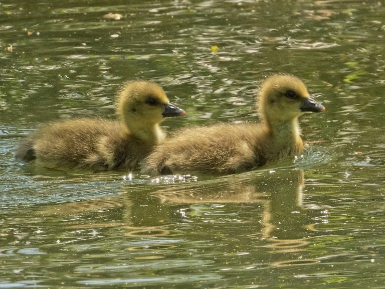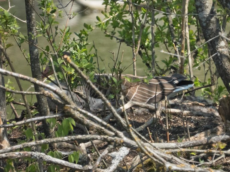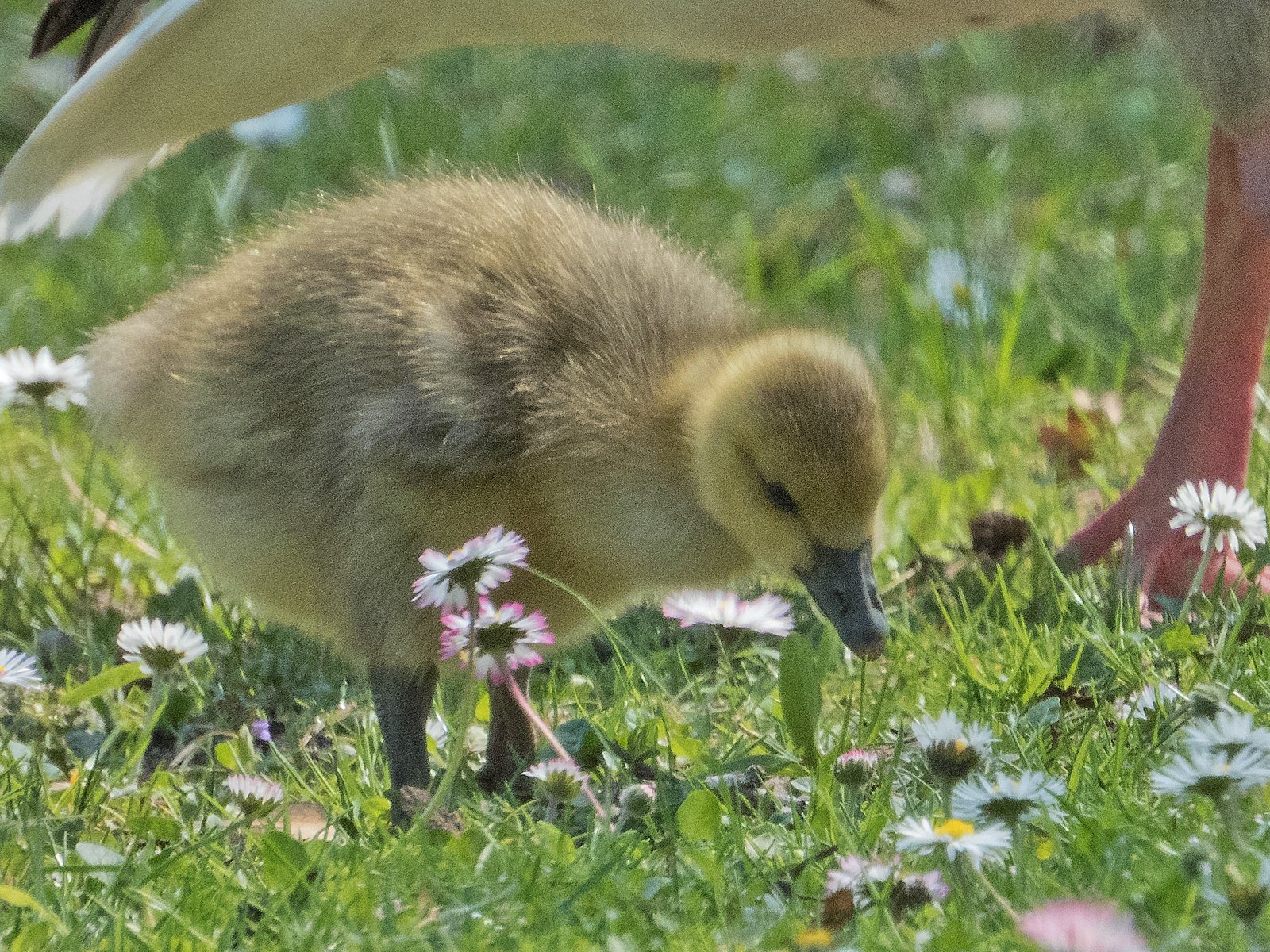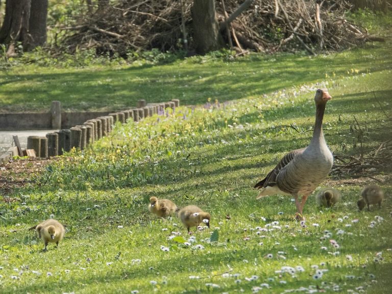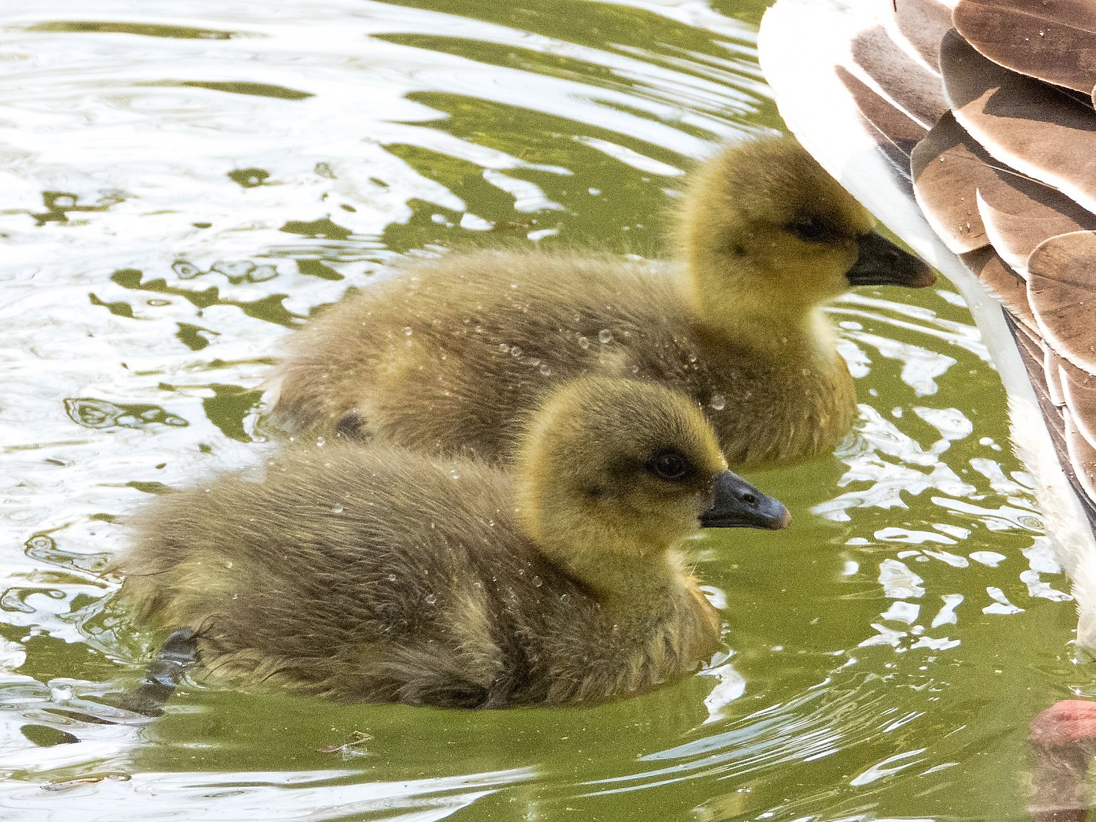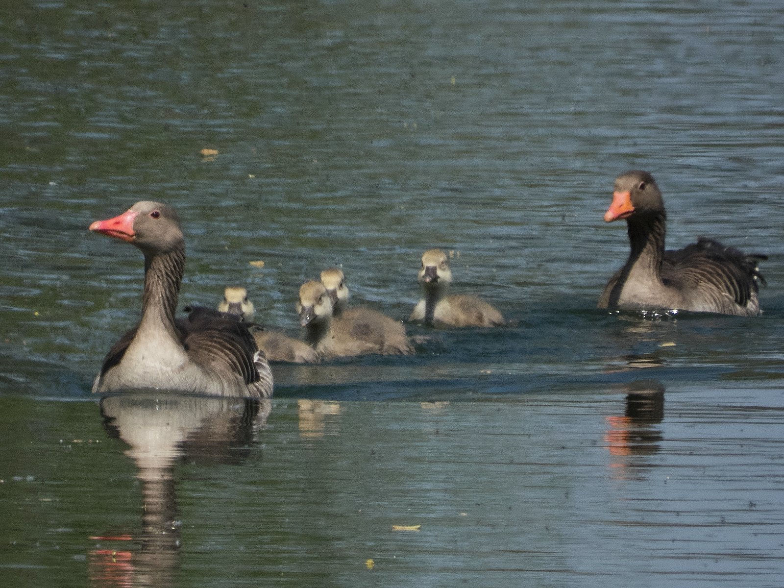 Im Bereich der eingezäunten Fischteiche führte ein Grauganspaar sechs Gössel. Den Bildern nach zu urteilen ist Eizahn nicht mehr zu sehen.