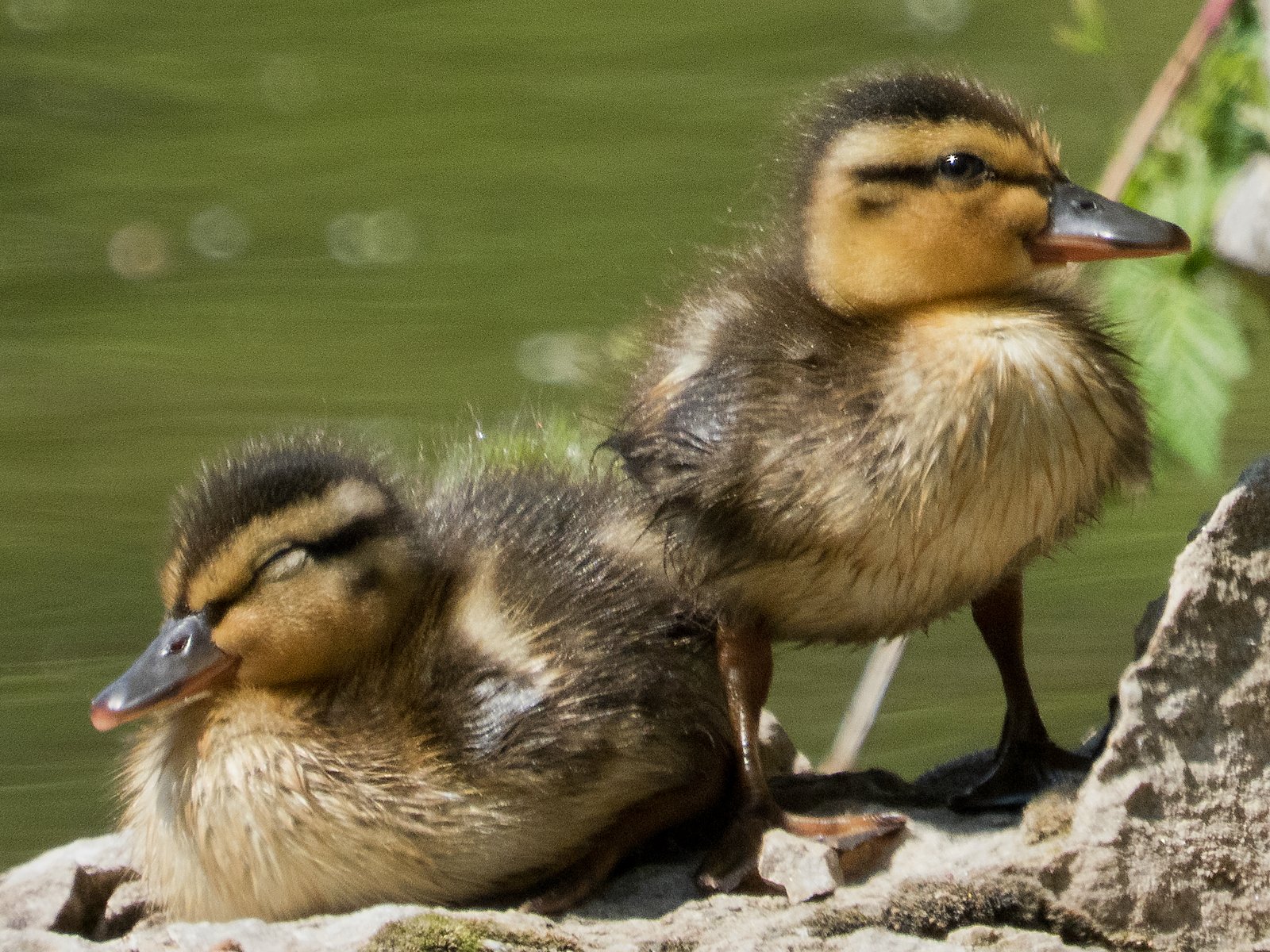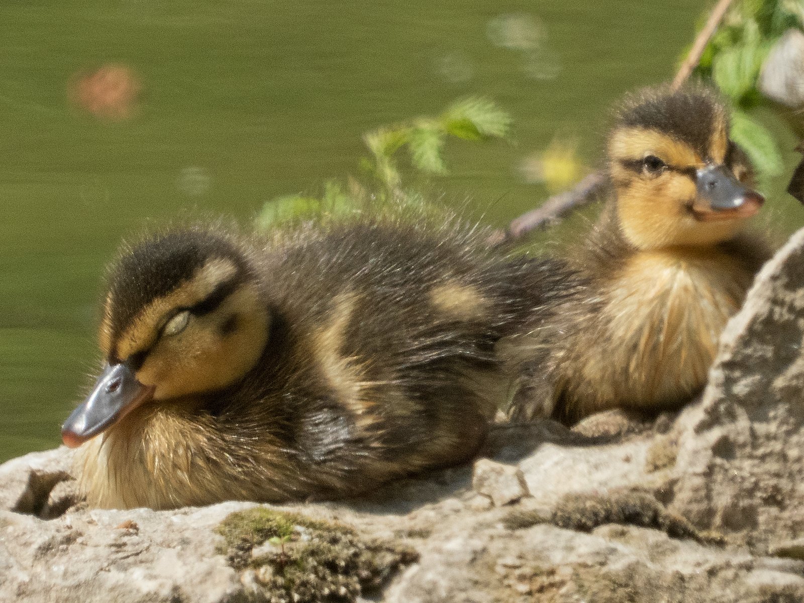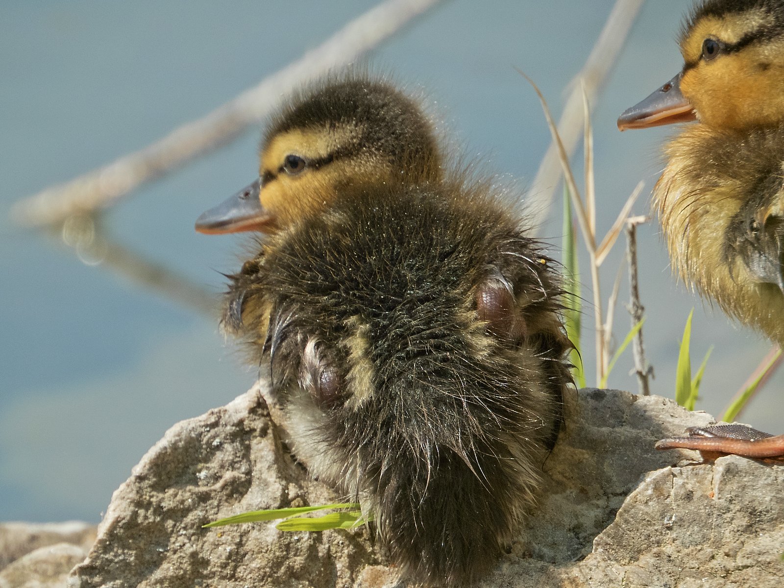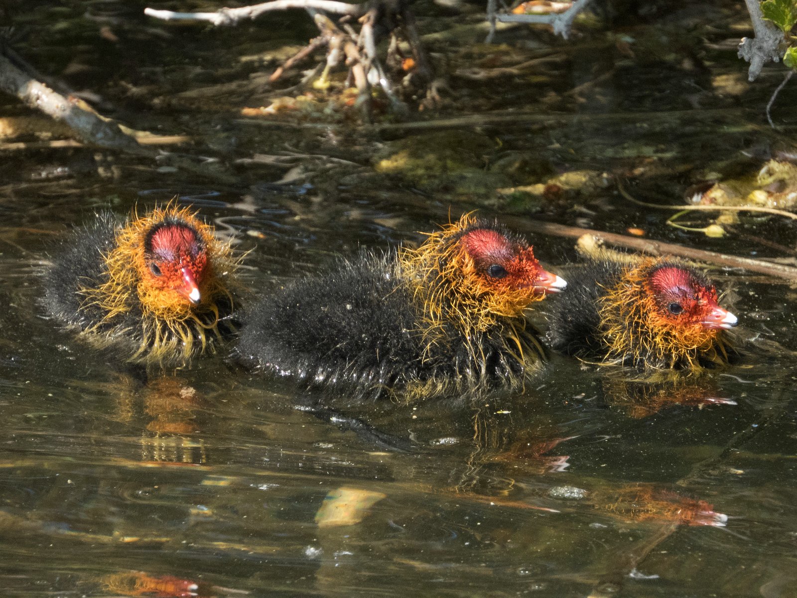 Zwei von fünf Blesshuhn-Küken. In dieser Saison mein erstes Blesshuhn-Kükenbild.