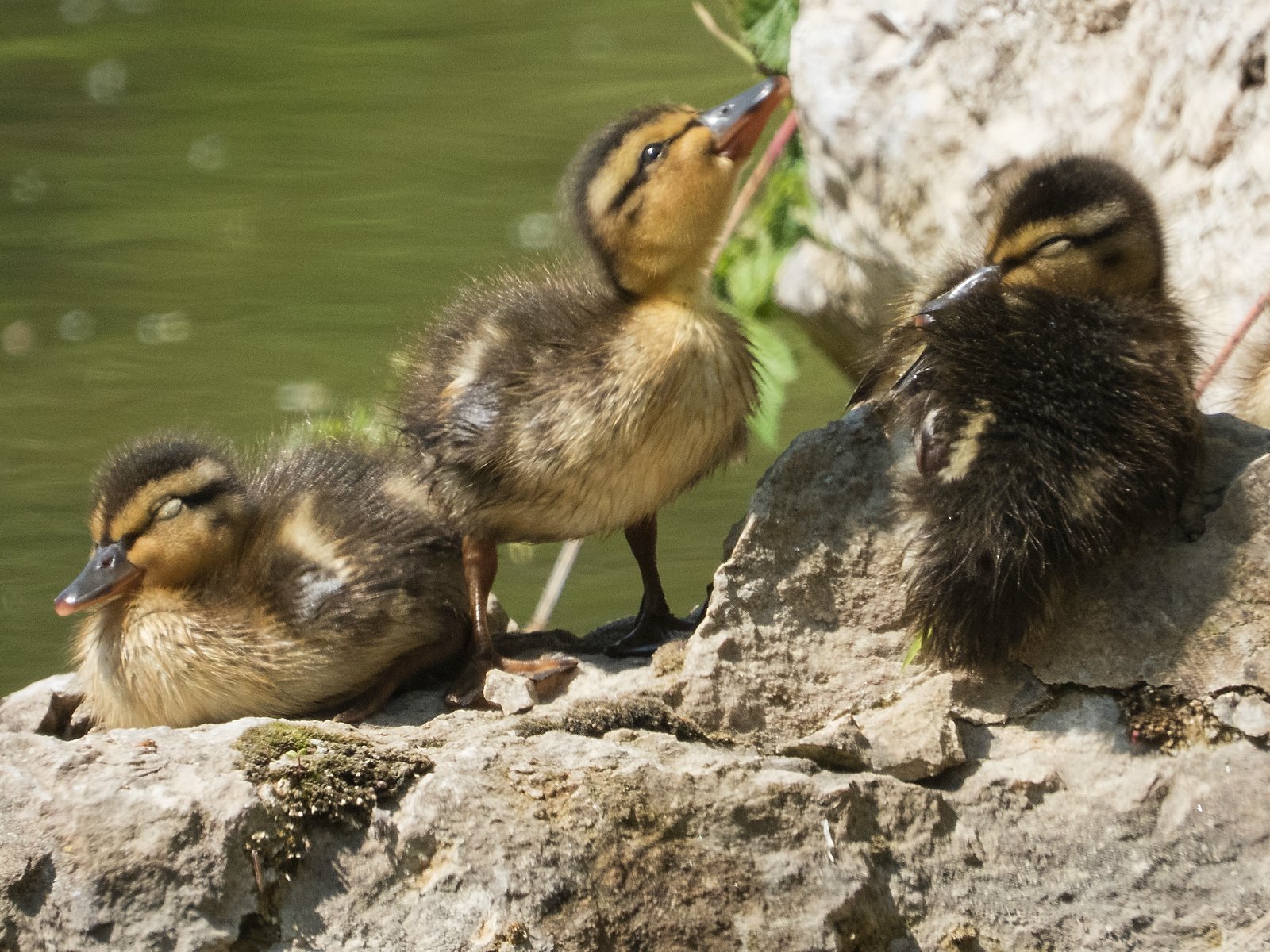 Bilanz der Beobachtungen am heutigen Sonnabend: Drei Graugans-Familien – einmal zwei, einmal vier und einmal sechs Gössel. Ein Gänsesäger-Weibchen führt acht Jungvögel. Eine Stockente mit vier Küken, ein Blesshuhn-Paar füttert fünf Blesshuhn-Küken. Zu sehen war heute auch ein Flussuferläufer. Im Nest nach wie vor eine Graugans, drei Kanadagänse, ein Höckerschwan.