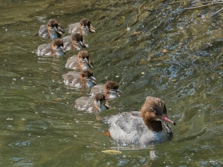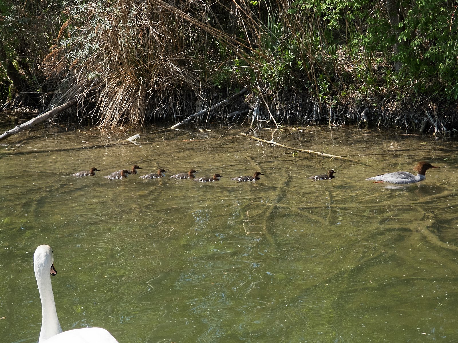 Ebenfalls im nördlichen Bereich heute eine Gänsesägerfamilie.