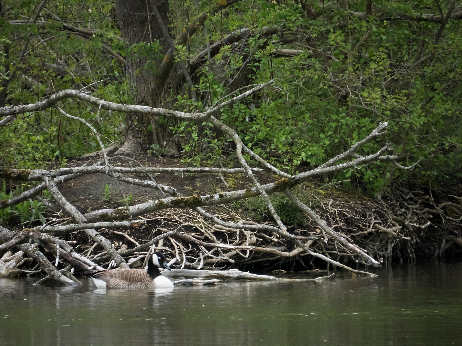 Kanadagans im Nest auf Insel gegenüber Eisvogelwand