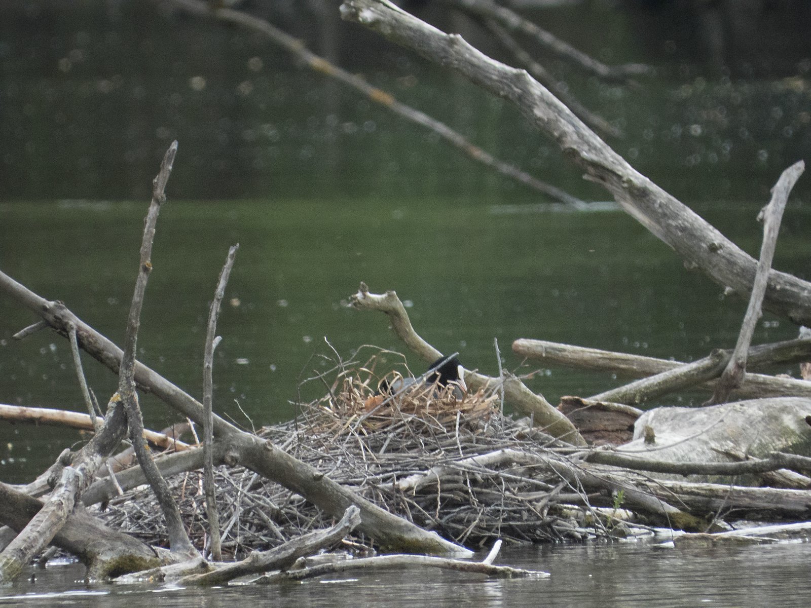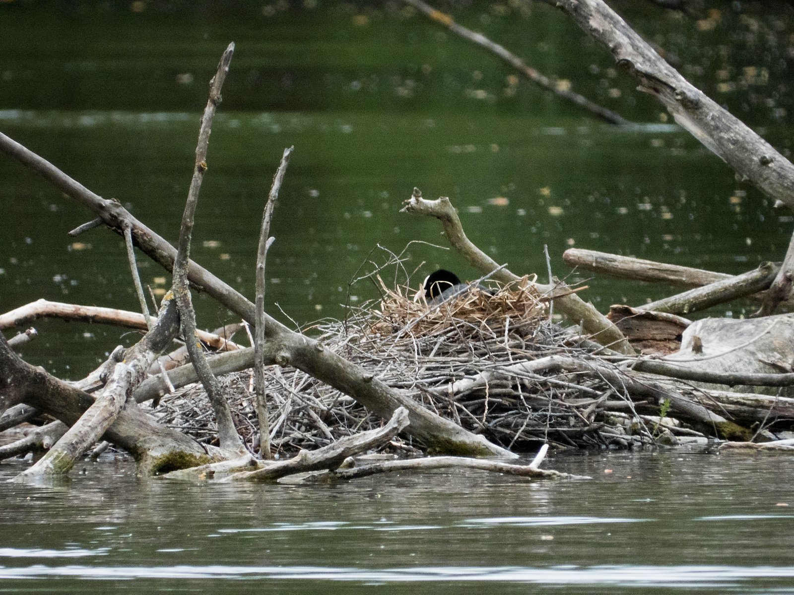 Eines von zwei Blesshuhn-Gelegen mitten im See