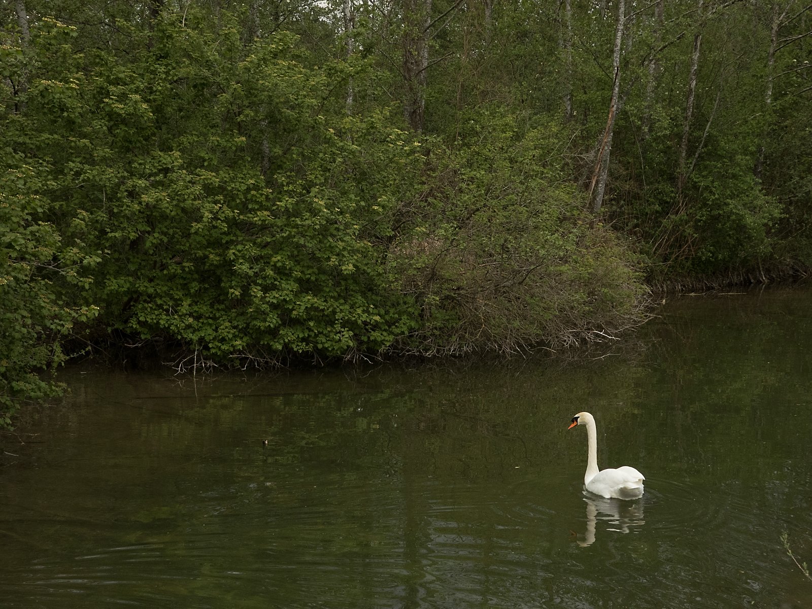 Frau Schwan macht Brutpause. Herr Schwan bewacht das leere Nest