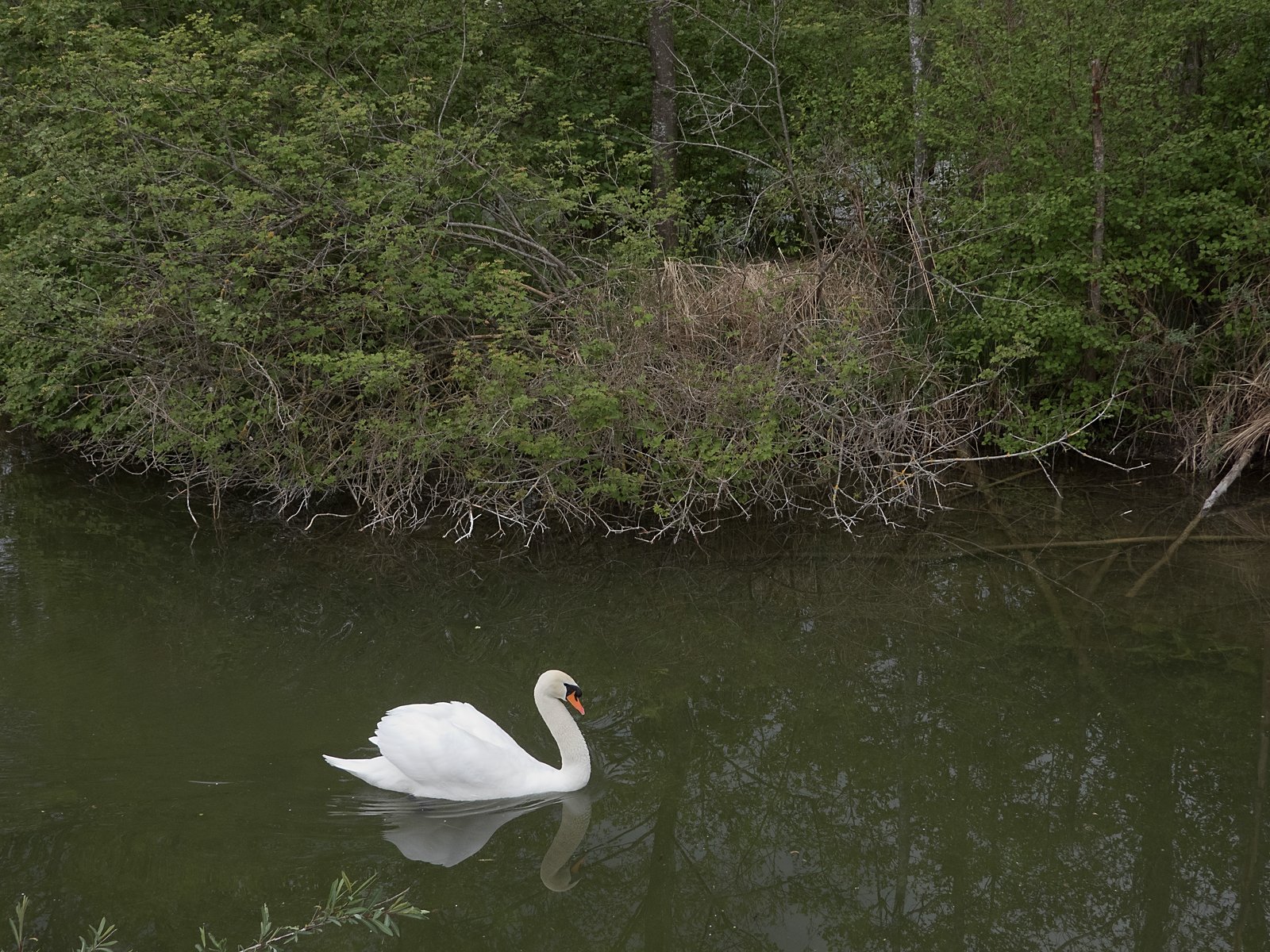 Frau Schwan macht Brutpause. Herr Schwan bewacht das Nest