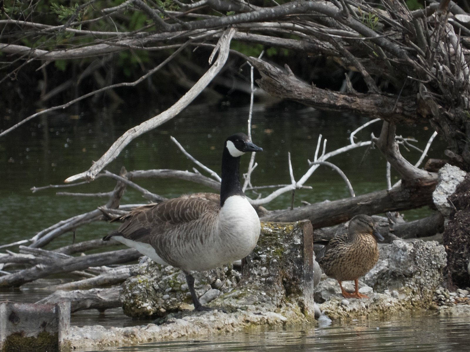 Kanadagans neben Stockente