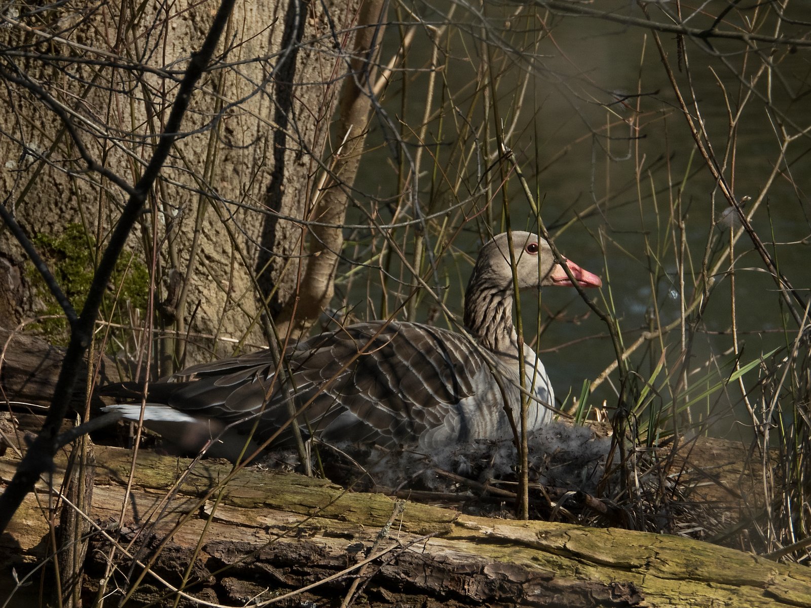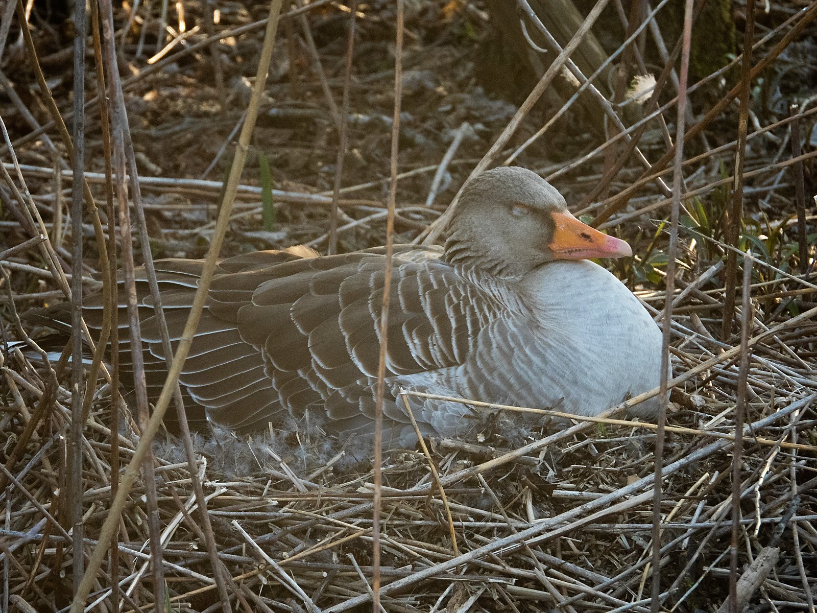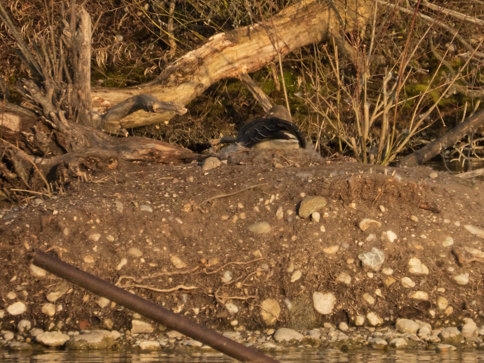 Im Nest befinden sich im Amperstausee derzeit acht Graugänse. In einem Nest davon waren heute sieben Gössel sichtbar. Es handelt sich um die südlichste Insel, kurz vor der Eisenbahnbrücke.