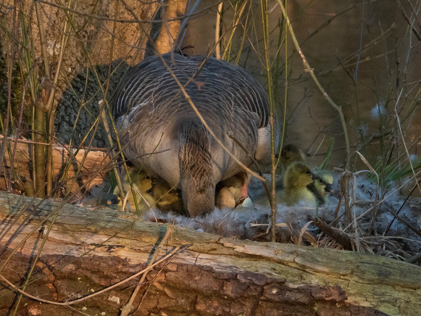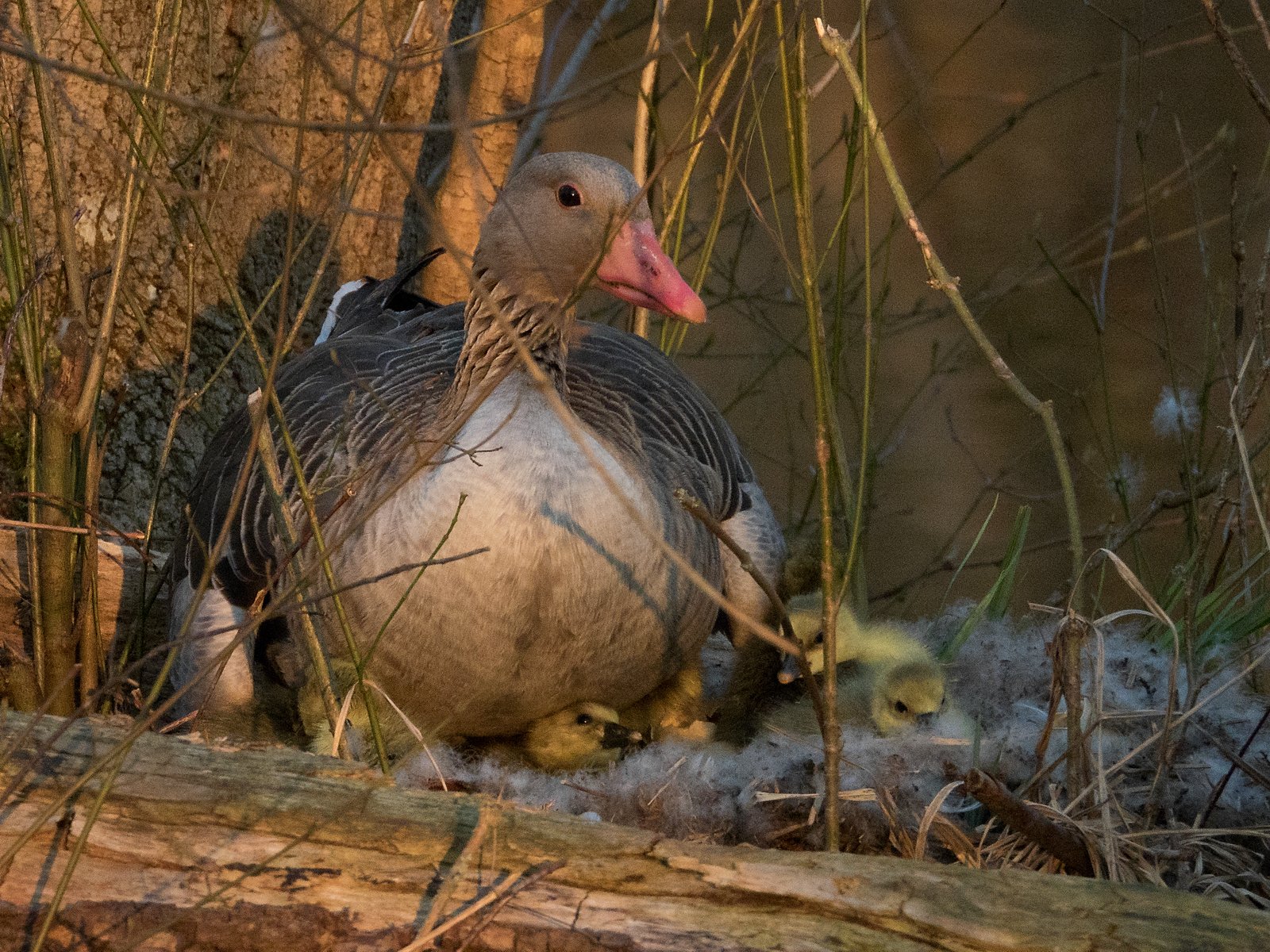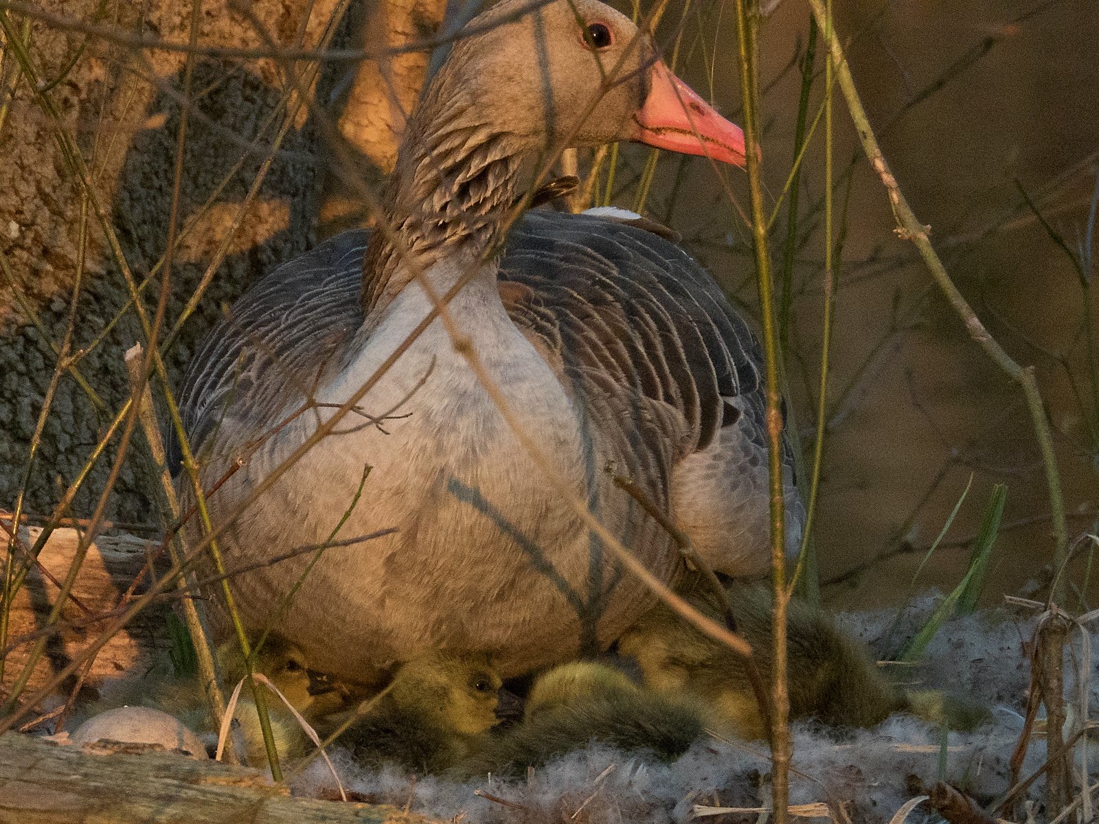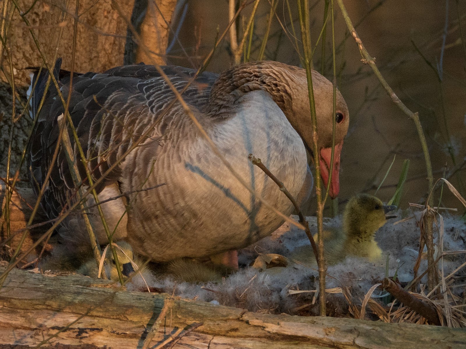 Konrad Lorenz schreibt in seinem “Jahr der Graugans”: “Den ersten Tag nach dem Schlüpfen verbringen die Gänsekinder noch unter der Mutter auf dem Nest. Dann beginnen sie kleine Ausflüge zu machen und sich so allmählich auf das Verlassen des Nestes vorzubereiten.”