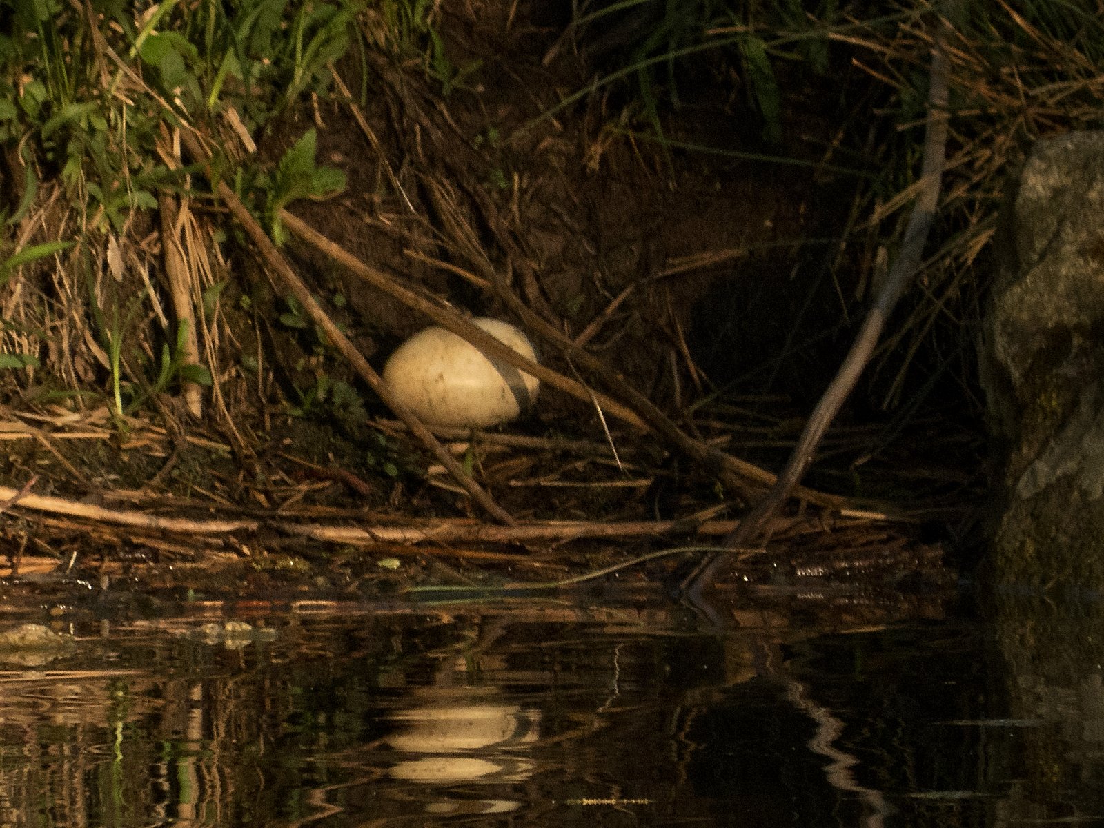 Ein runtergekullertes Ei, womöglich eine Graugans-Ei