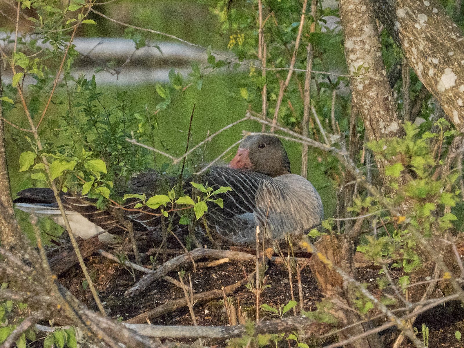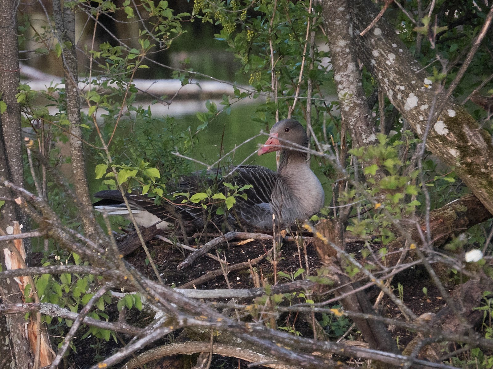 Einzige Graugans auf dem Nest im Amperstausee