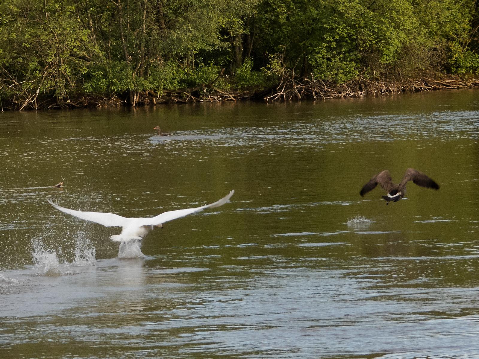 Schwanenvater stürzt sich zuallererst auf Kanadagans BA013666
