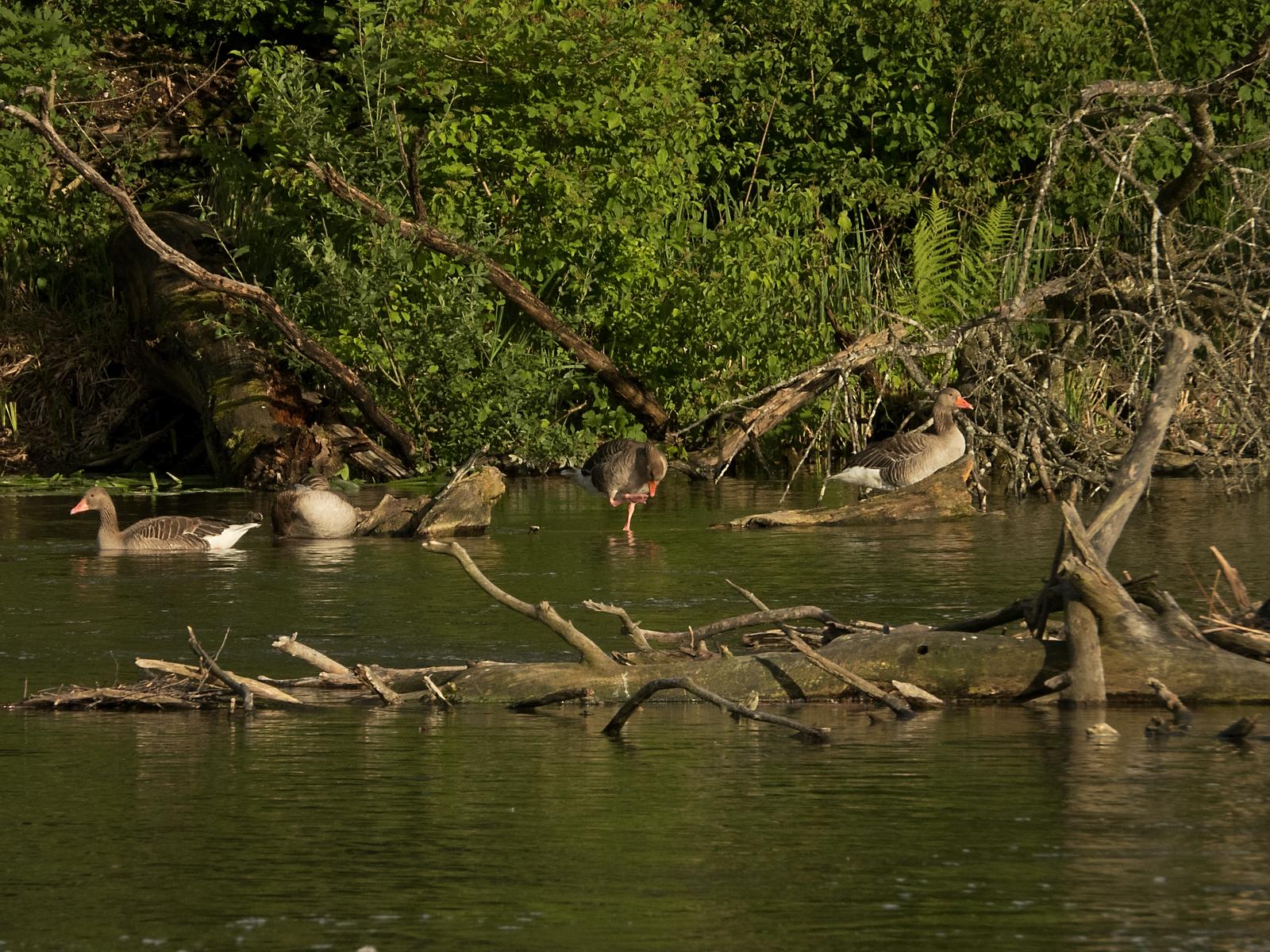 Wie so oft im Fischteichgebiet: Grau-Kanadagans-Mischling