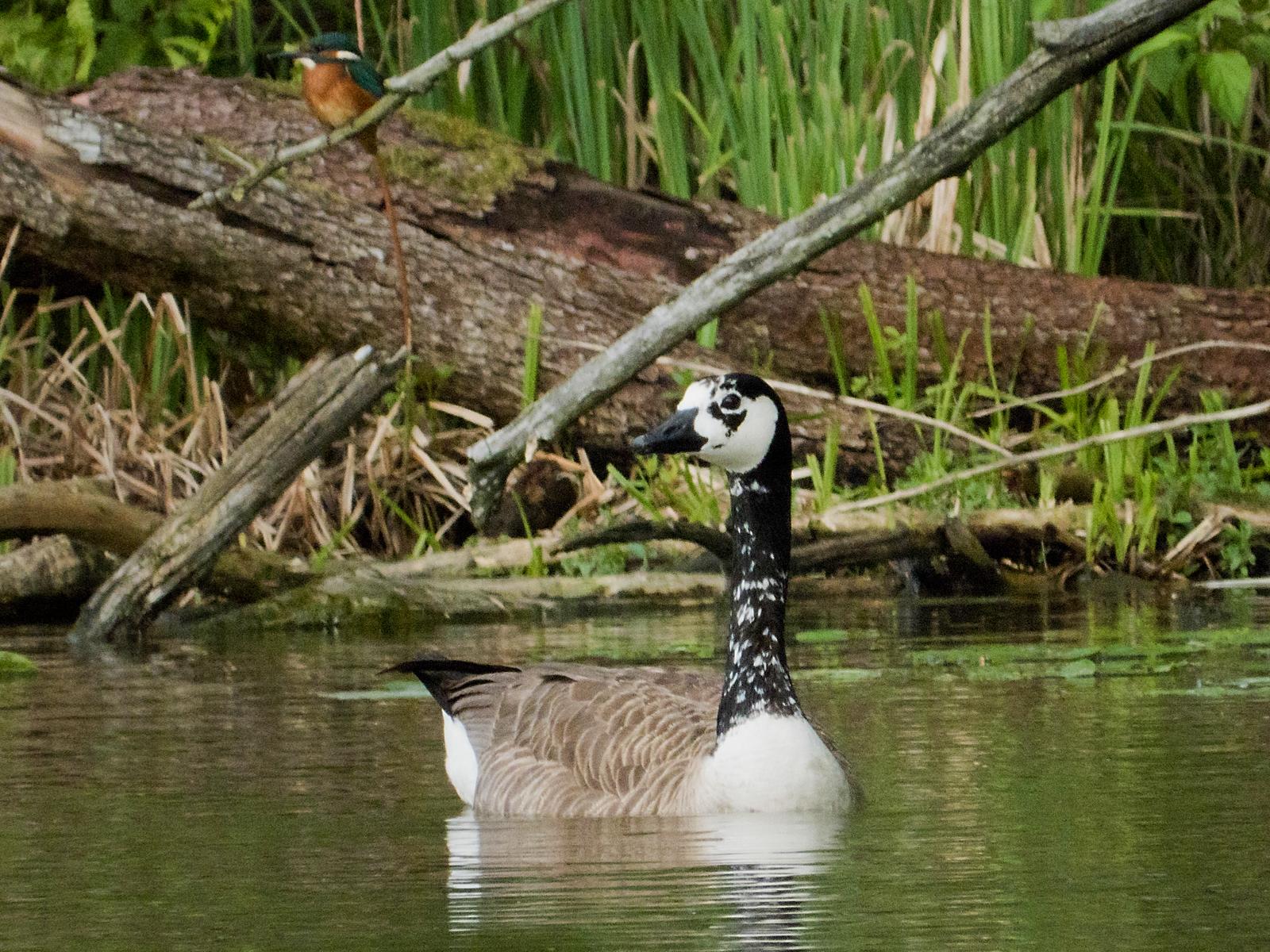 Oben Eisvogel, im Wasser Kanadagans BA013666