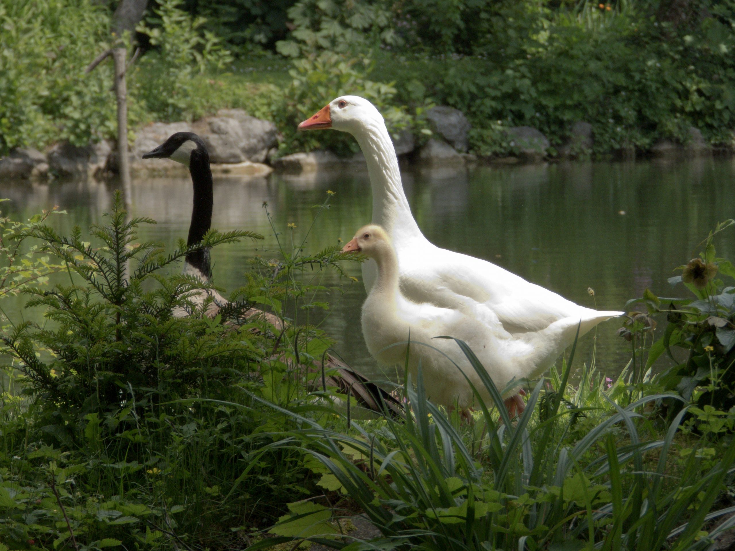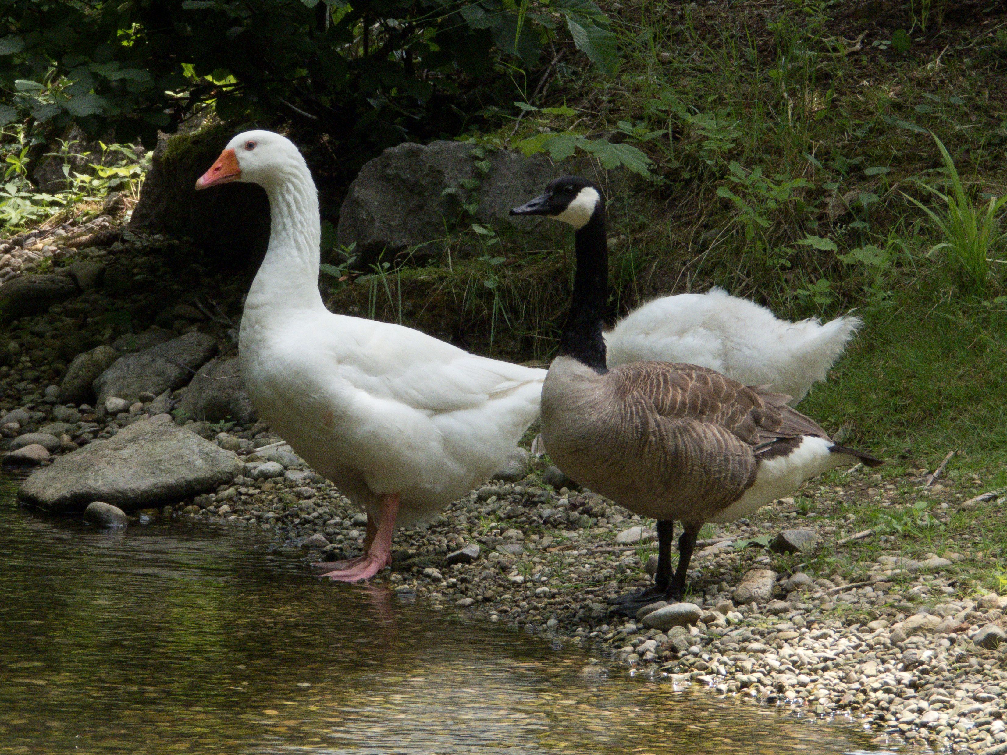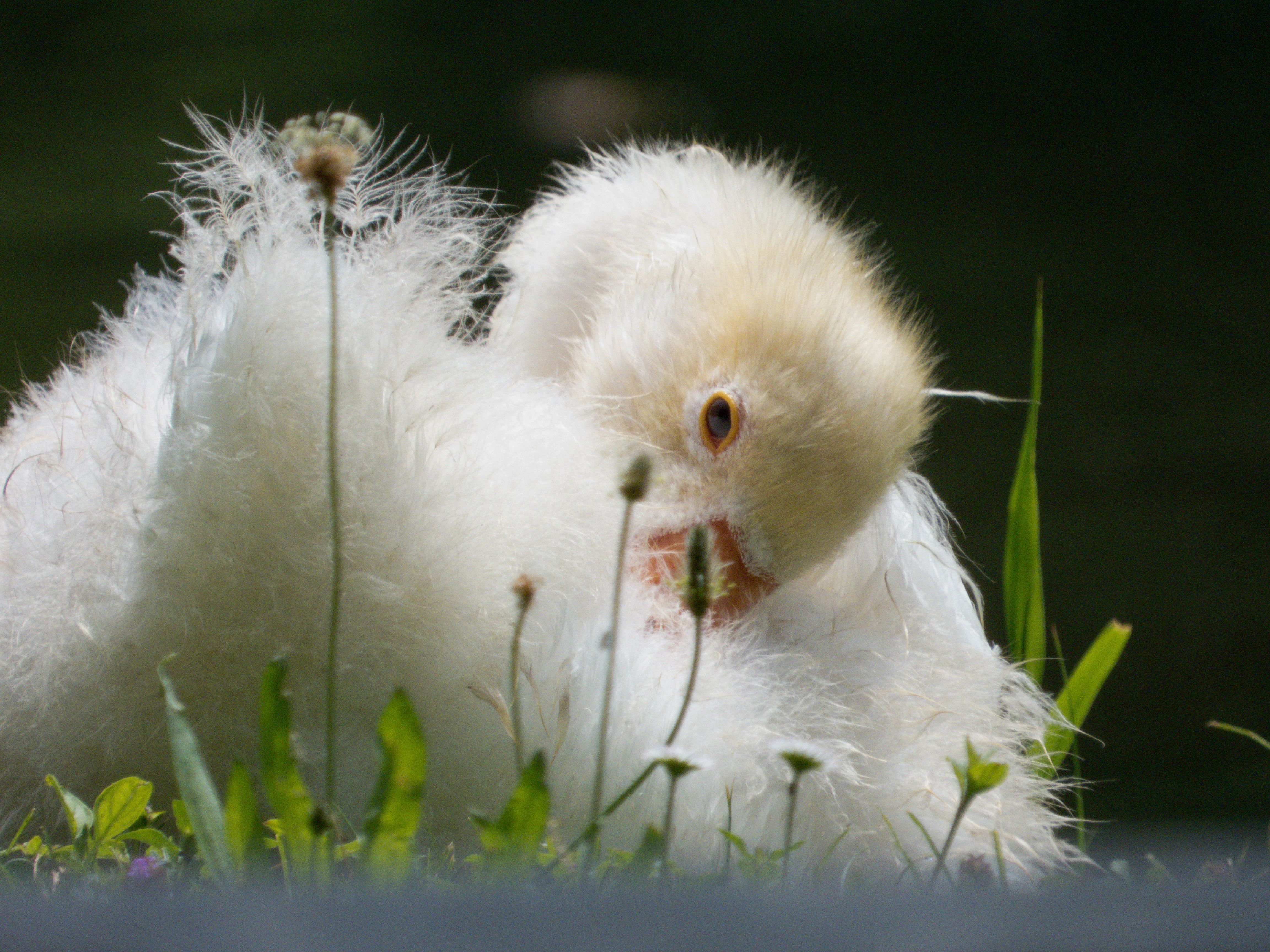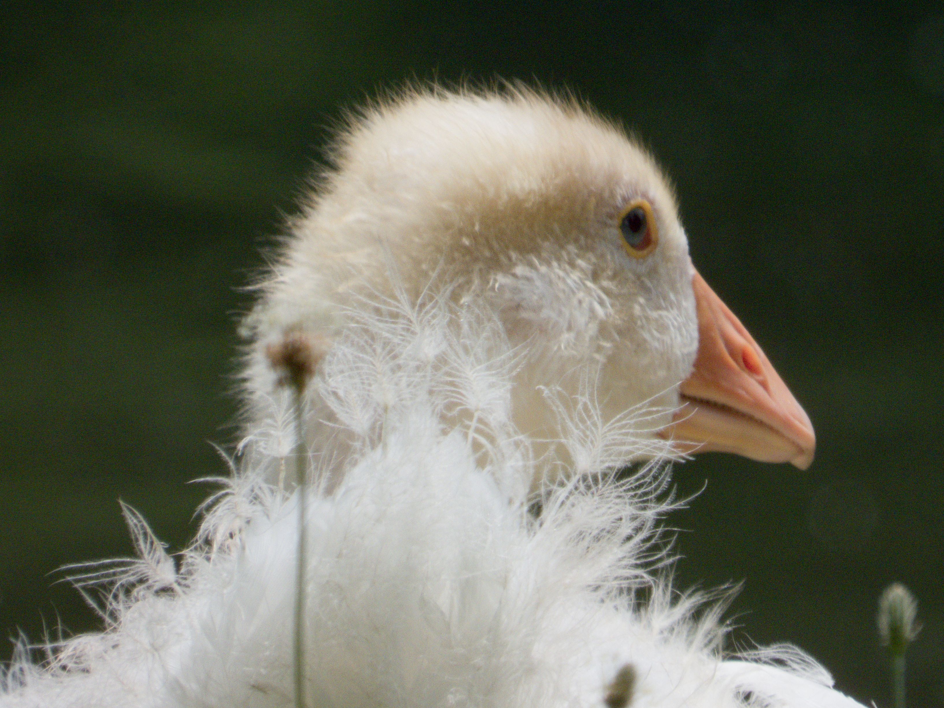 Aus dem Wasser war ein kurzer Gänseruf zu hören, wohl der einer Kanadagans. Gleich gesellt sich das Kleine wieder zu den anderen.