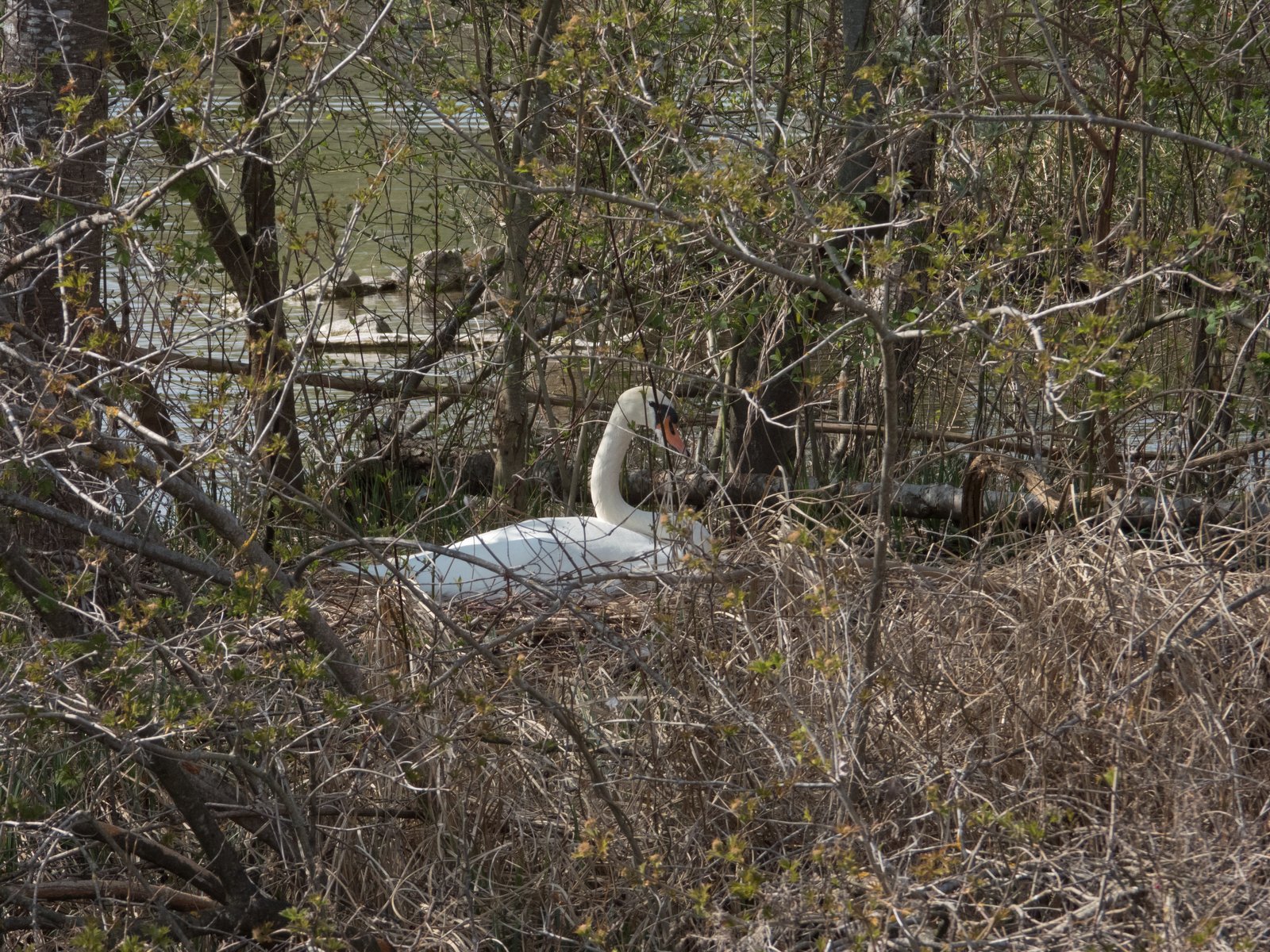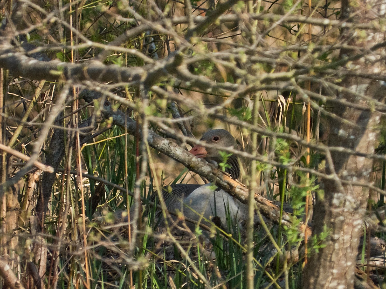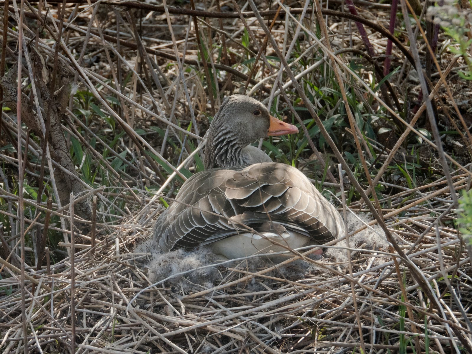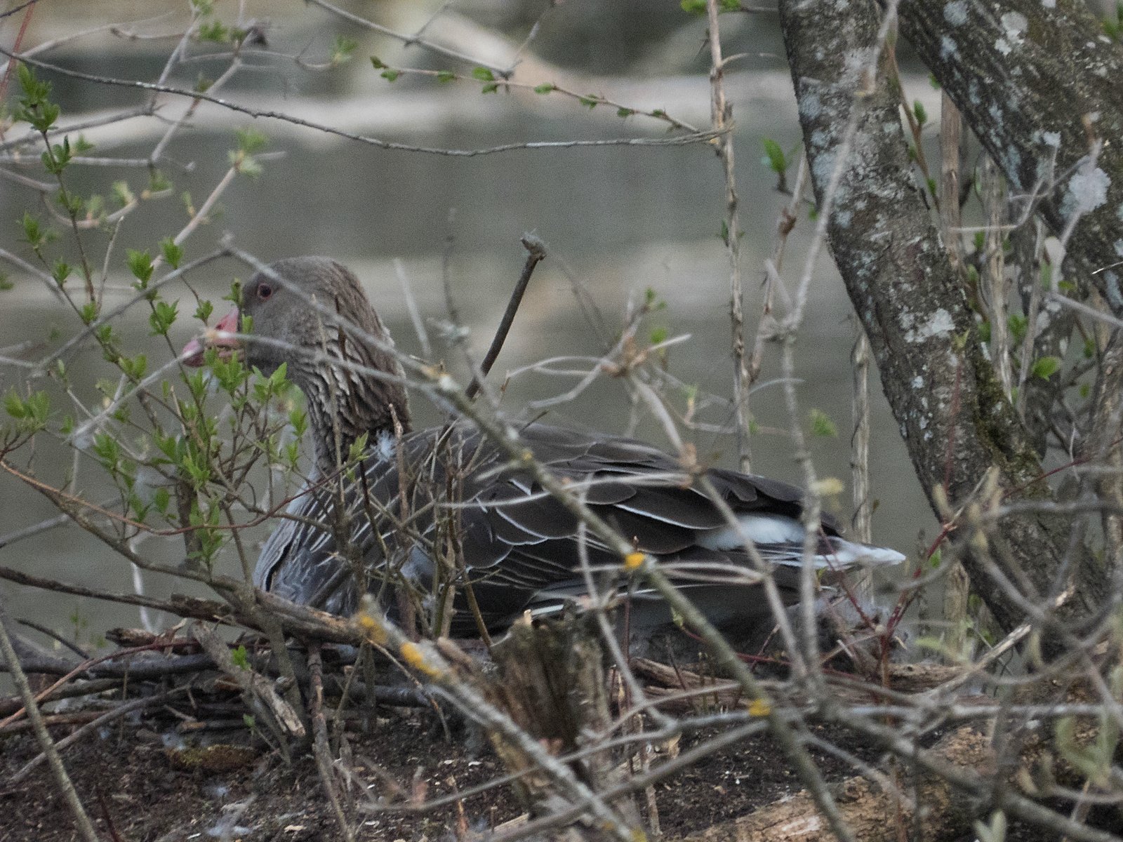 Gestern noch war nur ein einziges Gänseküken im Nest der Frau von Graugansganter mit Fußring Y78 kurz sichtbar. Heute verließ die Gänsemutter das Nest zusammen mit acht Gösseln. Im Amperstausee brüten jetzt noch sechs Graugänse. Daneben befinden sich im Nest ein Höckerschwan und drei Kanadagänse.