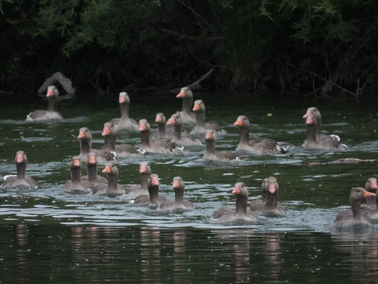 Die Graugänse rückten ob der vermuteten Gefahr eng zusammen.