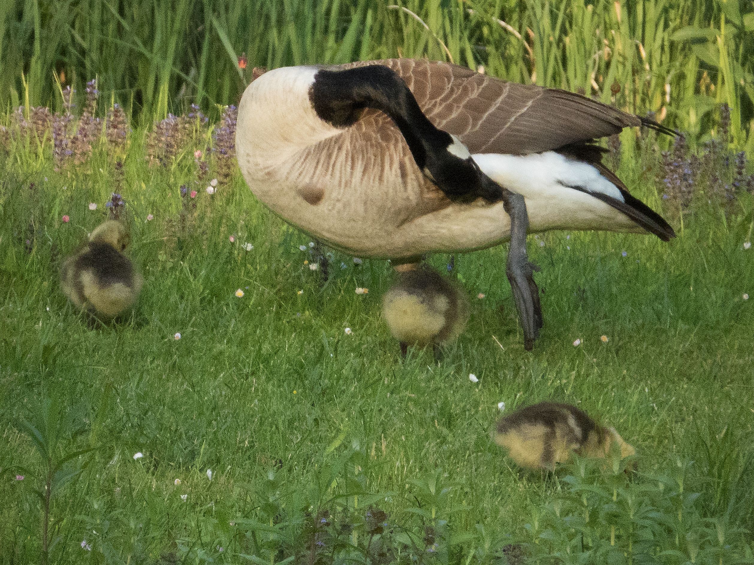 Drei von vier Kanadagans-Gösseln…
