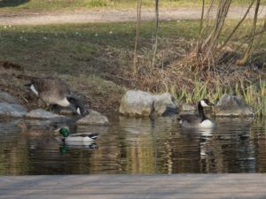 Weitere Beobachtungen: Diverse Stockenten und drei Teichhühner.