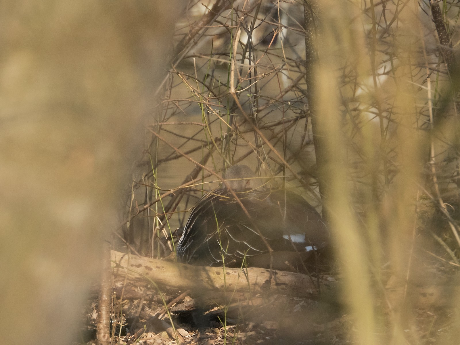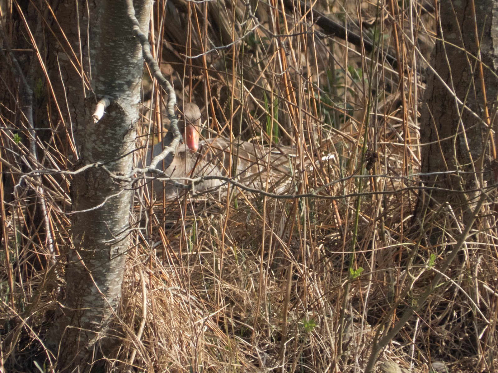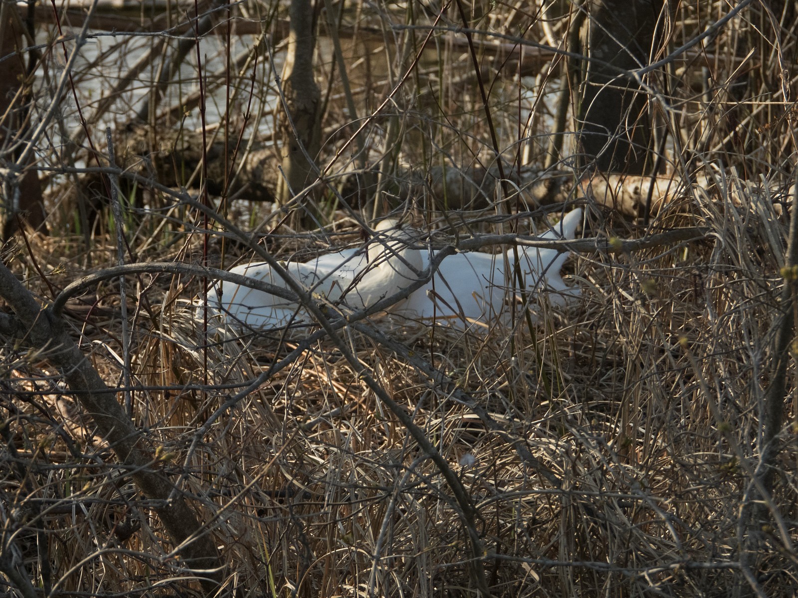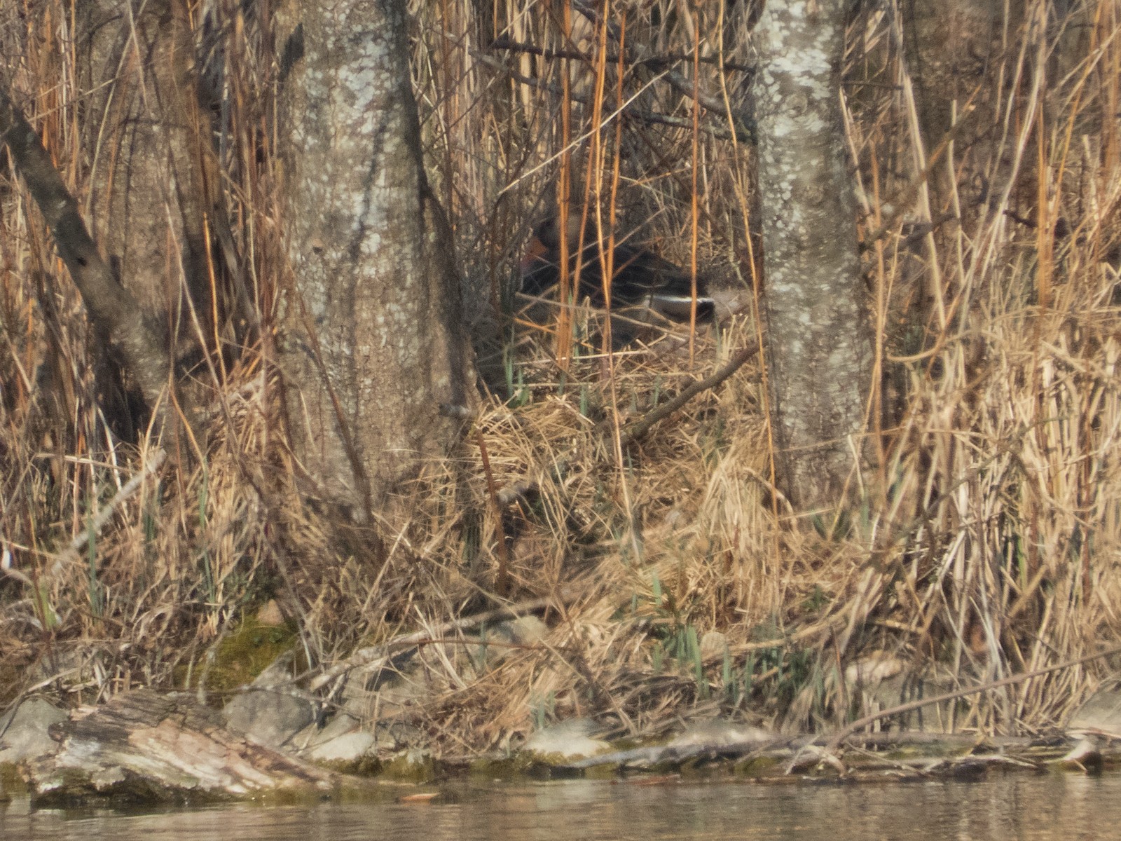 Auf einem Inselplatz hat es sich heute ein Höckerschwan gemütlich gemacht. Die Frage ist, ob der Platz tatsächlich das künftige Nest sein wird. Vor wenigen Jahren gab es einen ähnlichen Fall: Das Männchen belegte diesen Platz für kurze Zeit, gebrütet wurde später aber auf der kleinen Insel neben der Sitzbankgruppe; auf jener Insel also, auf der weiter vorne auf einer kleinen Anhöhe eine Graugans (siehe Film oben) brütet.