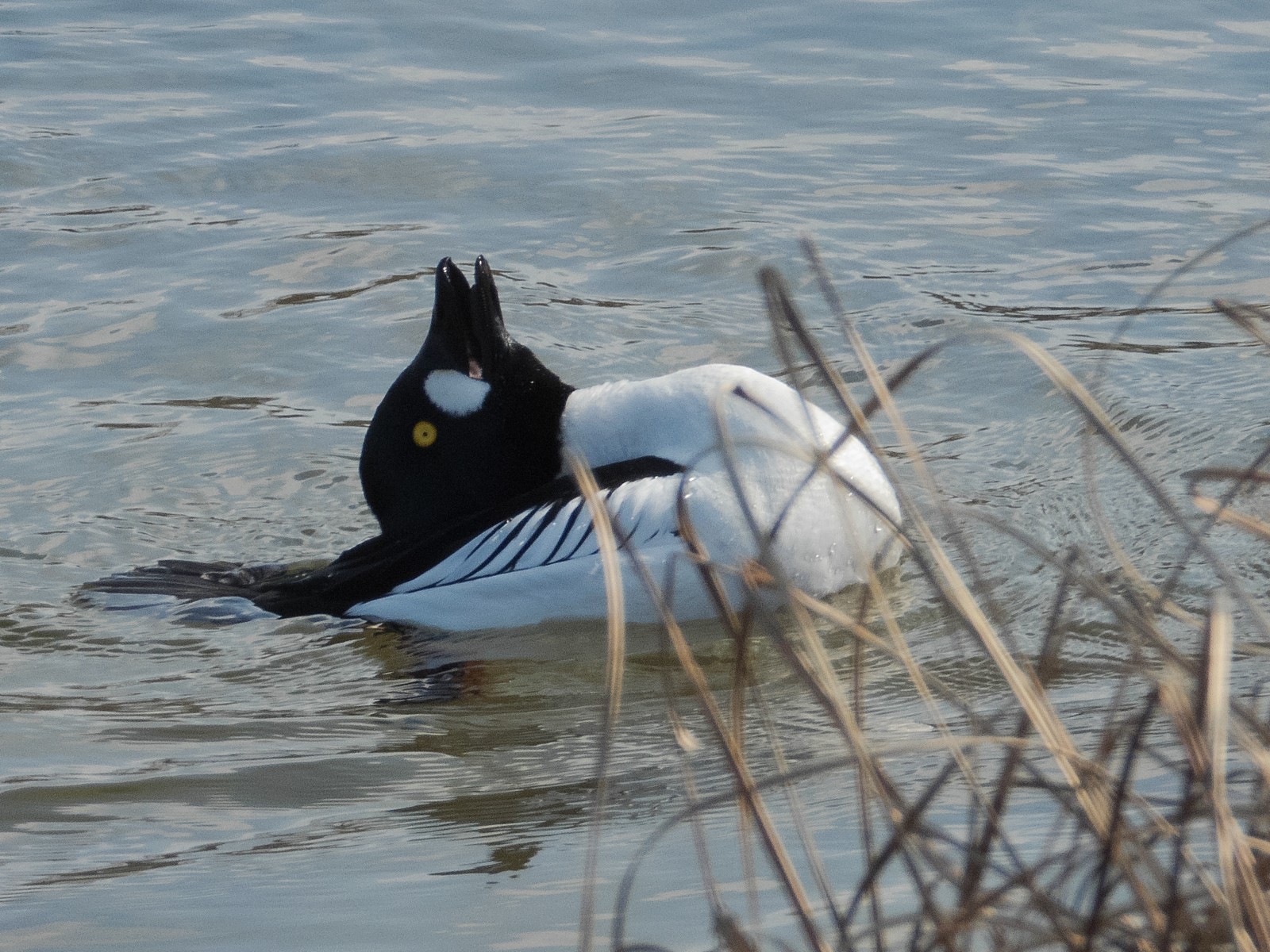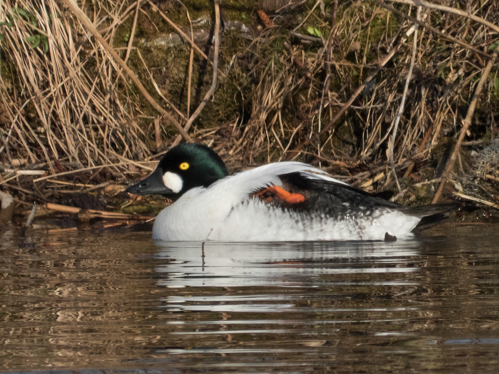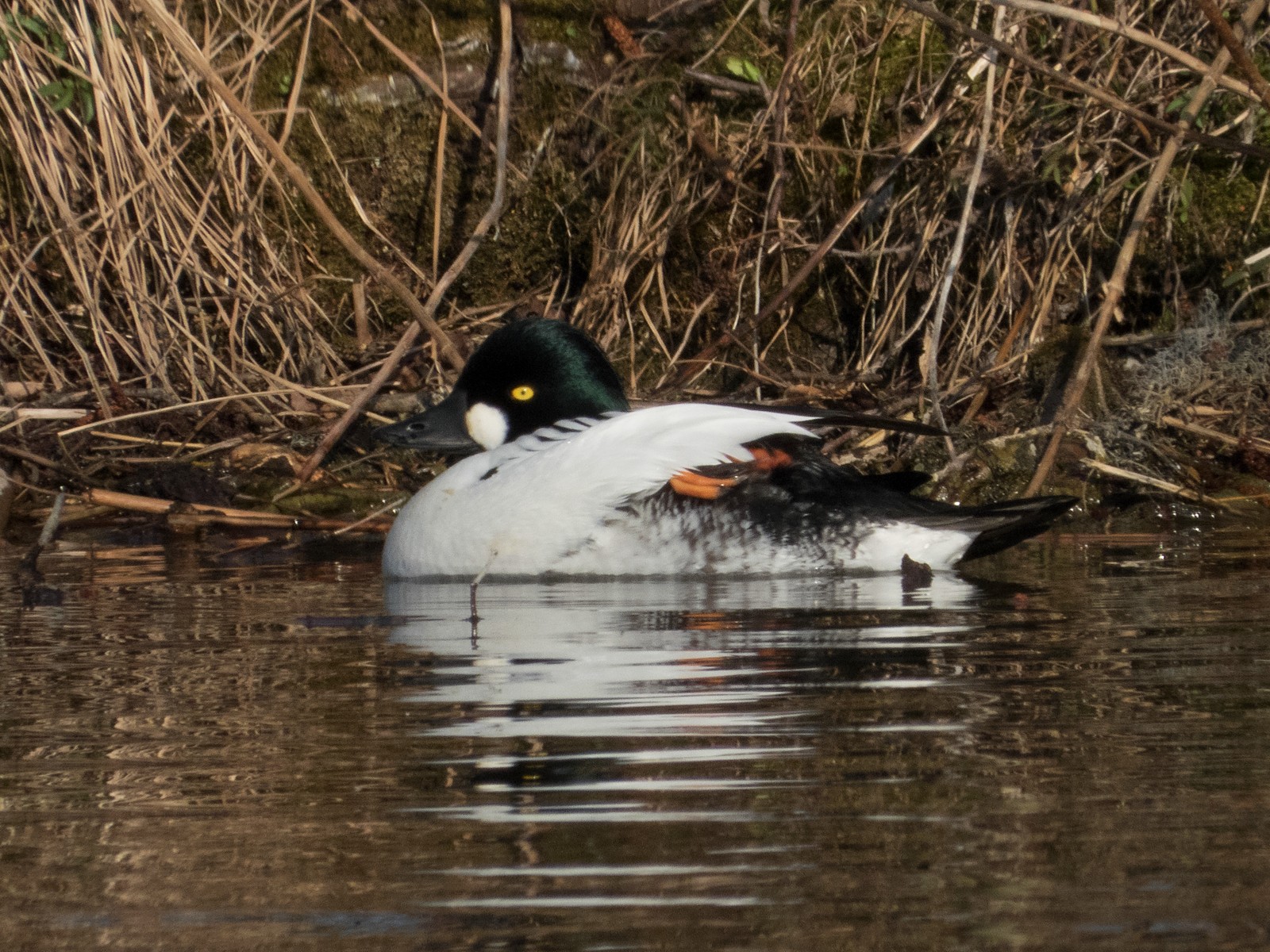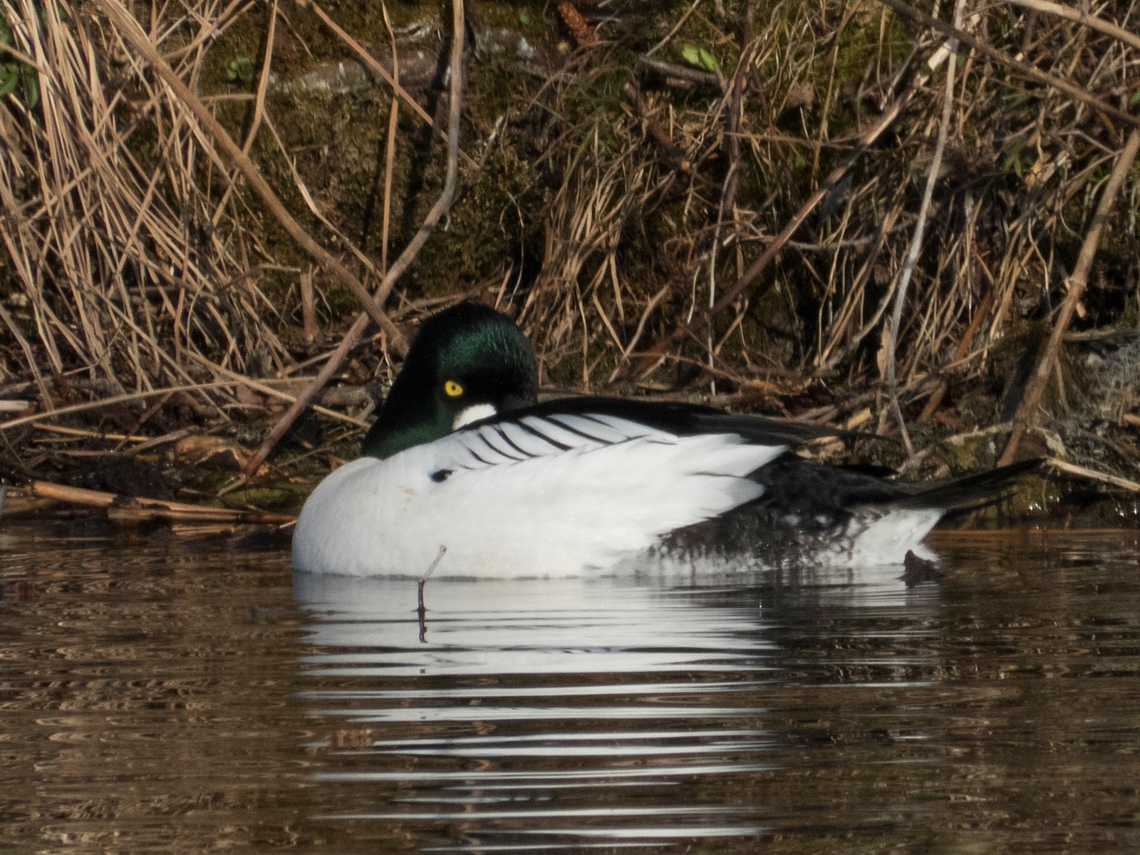 Auf einem Inselplatz hat es sich heute ein Höckerschwan gemütlich gemacht. Die Frage ist, ob der Platz tatsächlich das künftige Nest sein wird. Vor wenigen Jahren gab es einen ähnlichen Fall: Das Männchen belegte diesen Platz für kurze Zeit, gebrütet wurde später aber auf der kleinen Insel neben der Sitzbankgruppe; auf jener Insel also, auf der weiter vorne auf einer kleinen Anhöhe eine Graugans (siehe Film oben) brütet.