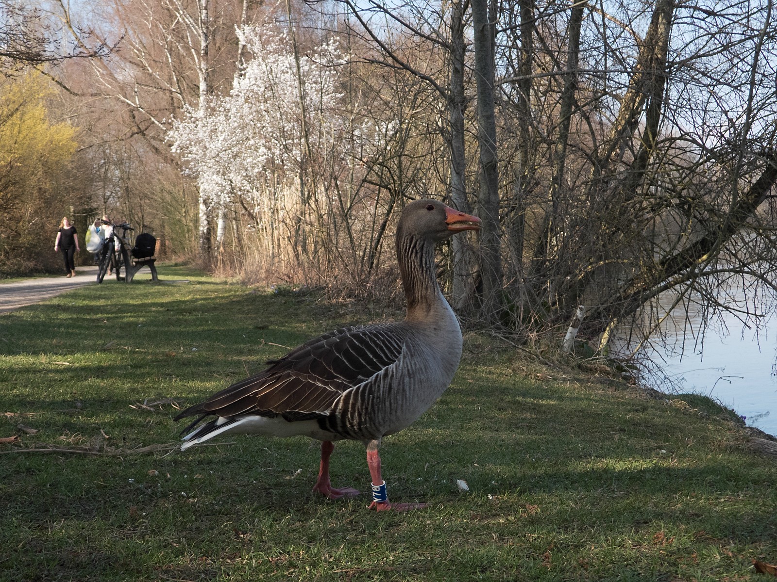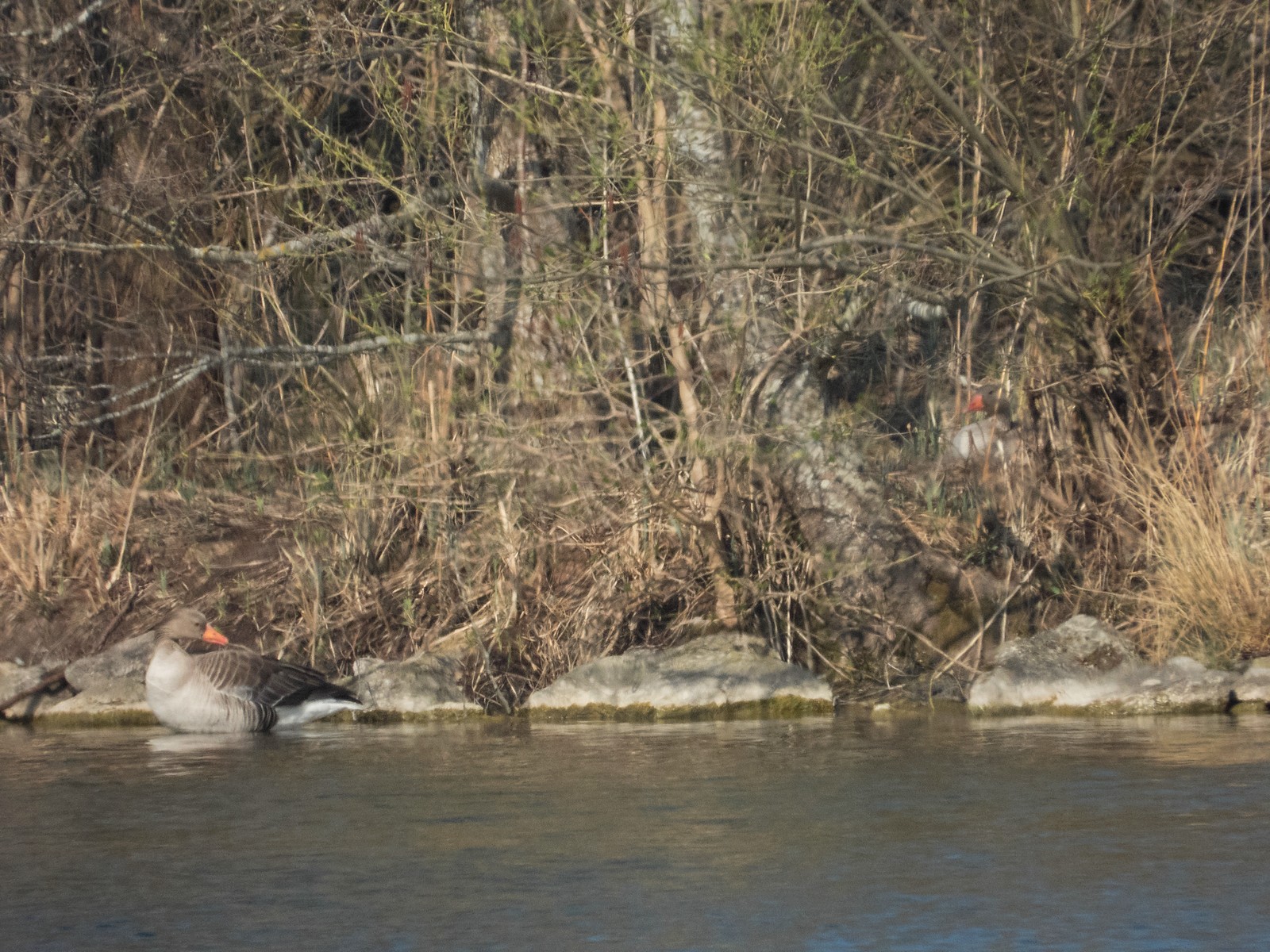 Hier im Film eingefangen der zutrauliche Graugansganter Y78. Auch heute hielt sich die Gans im Bereich der Insel neben der Eisenbahnbrücke auf. Auf dieser Insel brüten nach wie vor zwei Graugänse: eine Graugans in der Mitte der Insel (mutmaßlich die Partnerin von Graugans Y78) und eine Graugans am Hang in Richtung Eisenbahnbrücke. Graugans Y78 beobachte ich nun schon seit dem Jahre 2005 am Amperstausee.