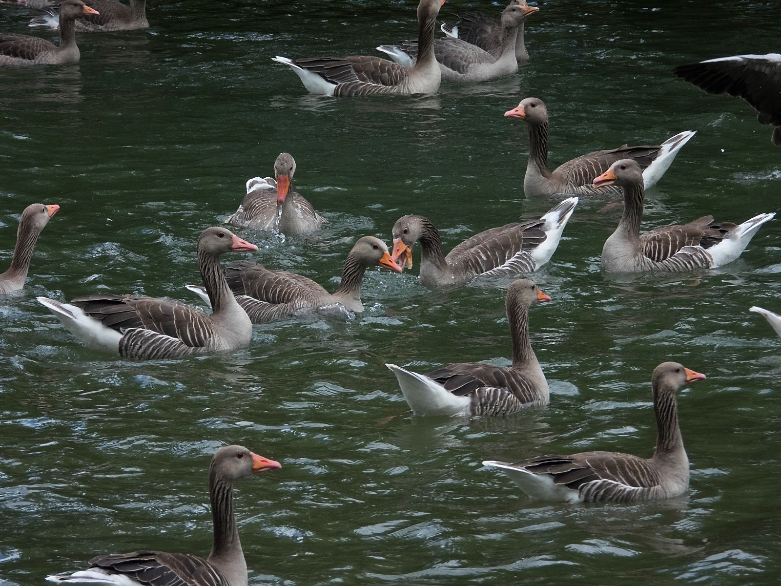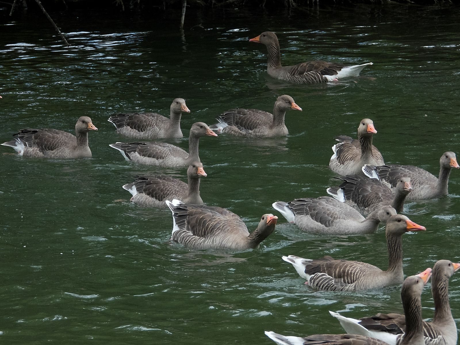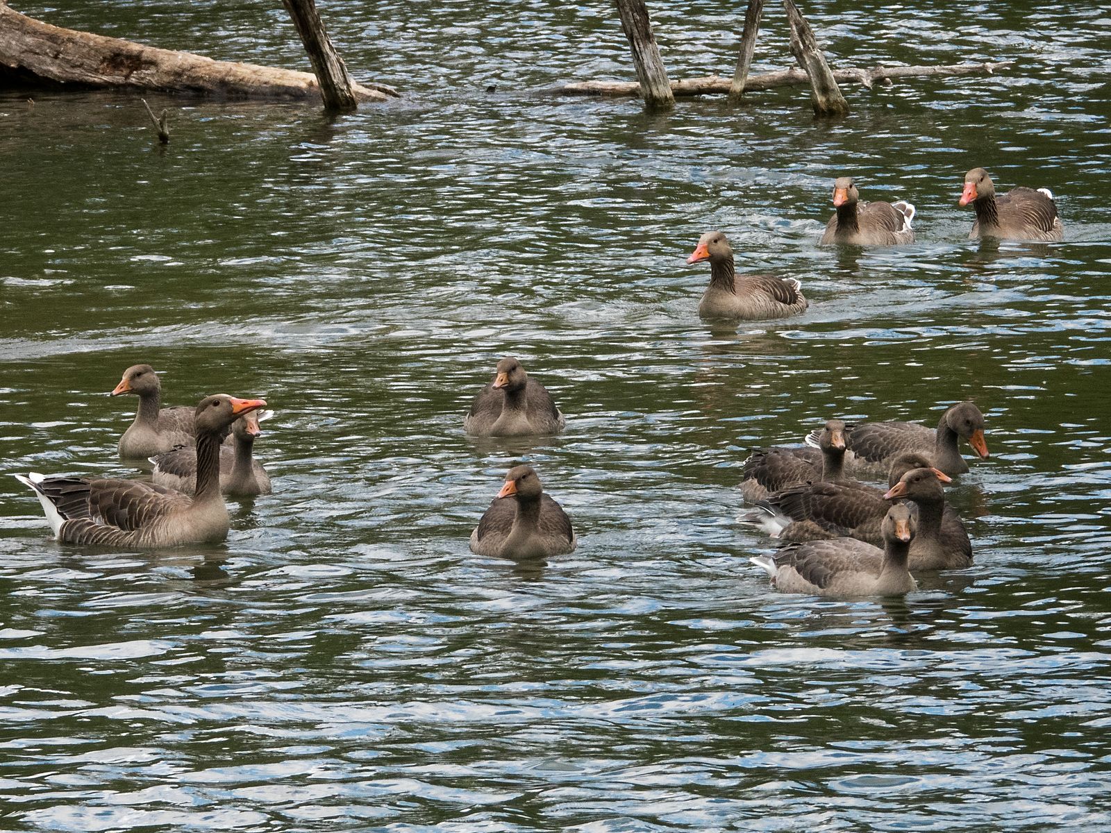 Zu sehen heute auch ein Grauganspaar mit neun schon recht großen Graugans-Jungen.